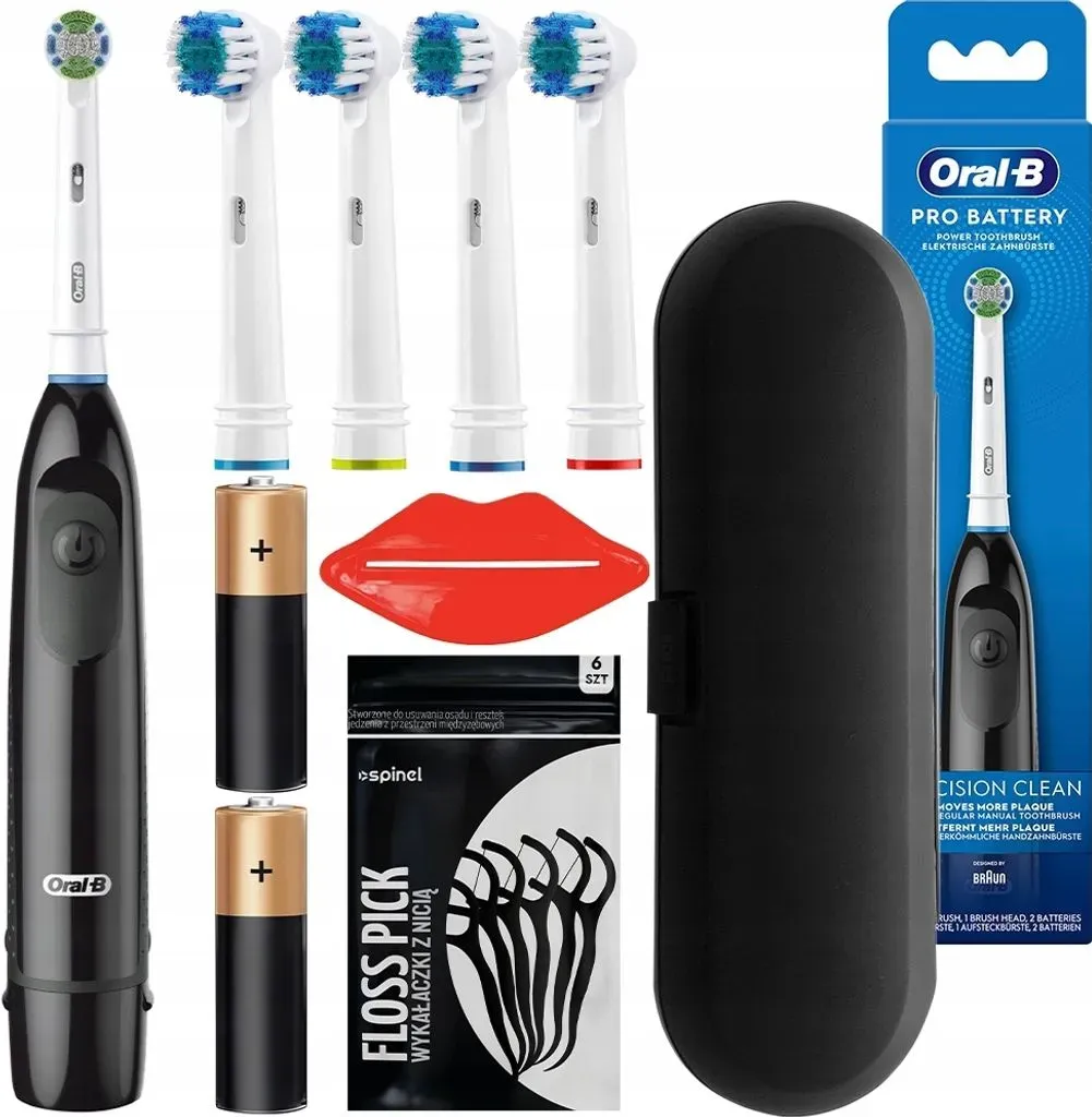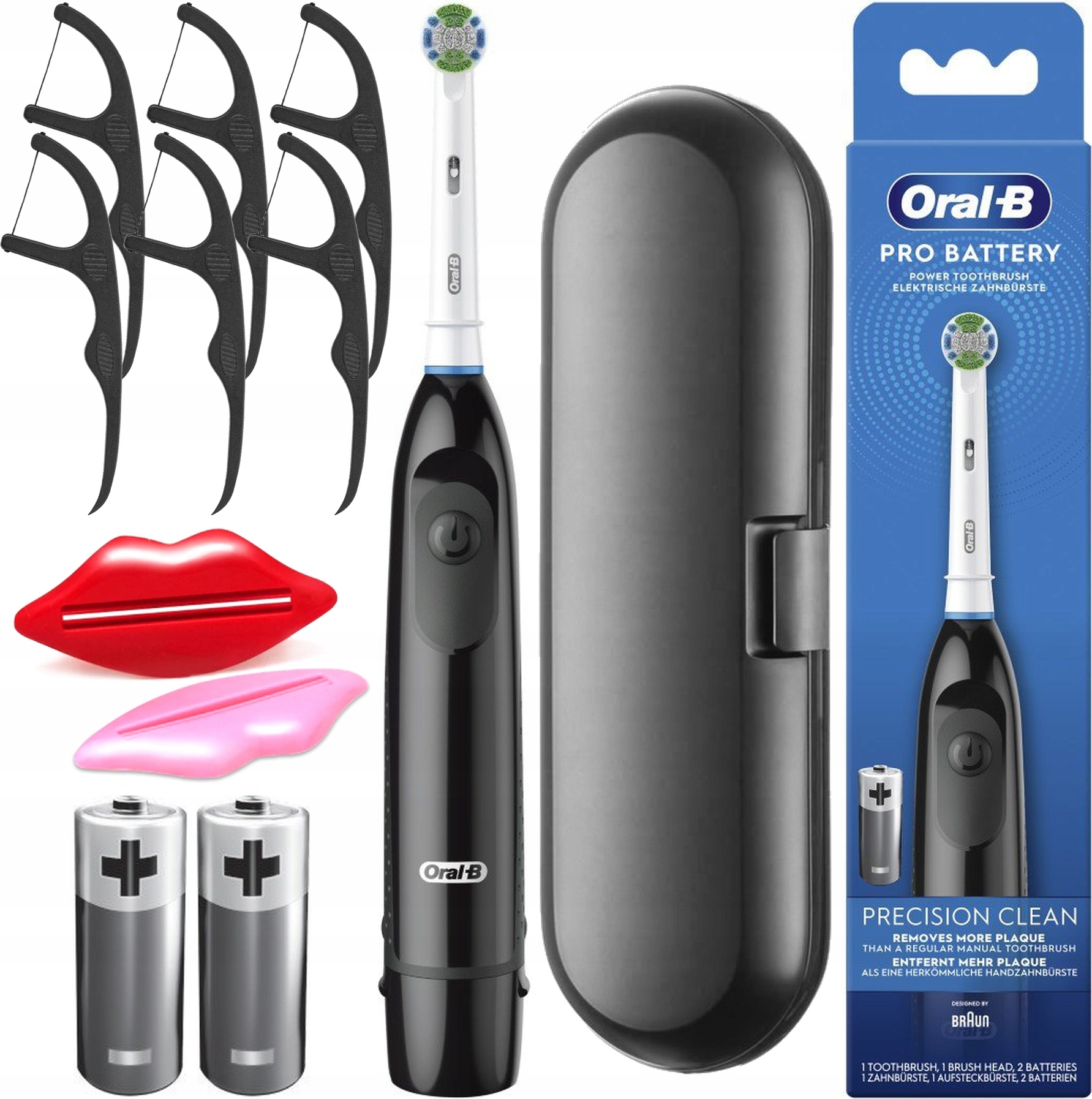 Kategorie: Elektrische Zahnbürsten - Oral-B - GTIN:5905701100422 - Elektrische Zahnbürste Oral-B DB5 Pro BatteryDie Oral-B Pro Battery Zahnbürste ist für Menschen gedacht, die ihr Abenteuer mit einer elektrischen Zahnbürste beginnen. Die Pro-Zahnbürste entfernt Plaque effektiver als eine Handzahnbürste, so dass Ihre Zähne und Ihr Zahnfleisch in einem besseren Zustand bleiben.Der runde Kopf reinigt besser. Der runde Bürstenkopf wurde unter der Aufsicht von Zahnärzten entwickelt und sorgt für eine hervorragende Reinigung.Kompatibel mit vielen Oral-B Bürstenköpfen, um Ihre Bedürfnisse zu erfüllen. Die Bürstenköpfe sollten alle 3 Monate ausgetauscht werden.Oral-B ist die weltweit von Zahnärzten empfohlene Zahnbürstenmarke Nr. 1.Das Set enthält:Elektrische Zahnbürste Oral-B Pro Battery2 AA-BatterienOriginal Oral-B Precision Clean Bürstenkopf4 Daily Clean AufsätzeZahnpasta-QuetscherZahnseide ZahnstocherGRüNDLICHE REINIGUNG Vertrauen Sie auf die konstante Akkuleistung der Oral-B Pro Akku-Zahnbürste, um Plaque zu entfernen und die Zähne durch die Beseitigung oberflächlicher Verfärbungen aufzuhellen. Der runde Präzisionszahnbürstenkopf wurde von professionellen zahnmedizinischen Werkzeugen inspiriert, um Zahn für Zahn zu reinigen. Die speziell entwickelten Borsten sorgen dafür, dass jeder Zahn optimal erreicht wird. ORIGINAL ORAL-B PRECISION CLEAN-AUFSATZ Der Precision Clean Ersatzaufsatz, der für elektrische Zahnbürsten von Oral-B entwickelt wurde, entfernt mehr Plaque als eine ... Für Reisende ist dieses Angebot mit Reiseetui eine praktische Wahl. ![]() ![]() Oral-B elektrische Zahnbürste DB5 Pro Battery mit Zubehör Reiseetui - Schwarz