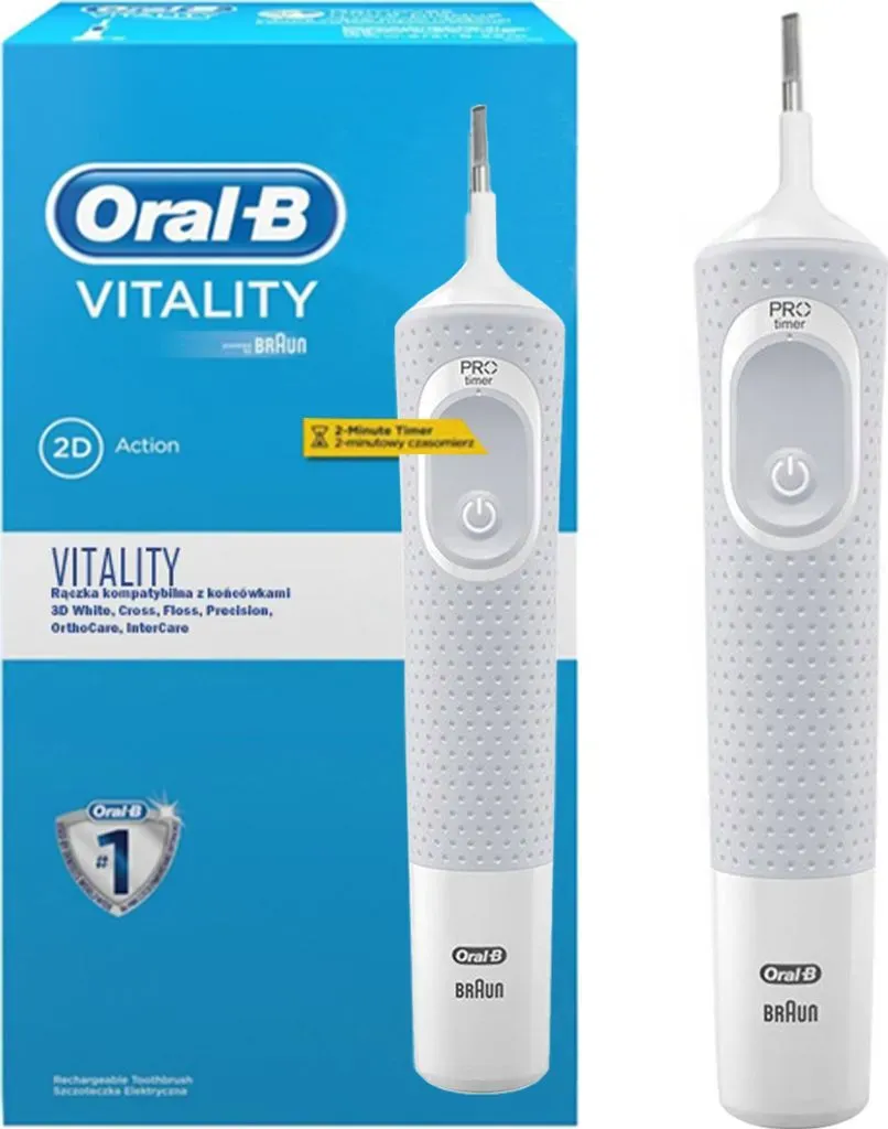 Kategorie: Elektrische Zahnbürsten - Oral-B - GTIN:5905701121144 - ORIGINAL BRAUN ORAL-B VITALITY ELEKTRISCHER ZAHNBüRSTENGRIFFEin neuer original Braun Oral-B Vitality Zahnbürstengriff ist ideal, wenn Ihre alte Zahnbürste kaputt ist und Sie nicht das Geld für ein neues Set ausgeben möchten. Wenn Sie das Ladegerät und die Aufsätze haben, dann ist der Kauf des Griffs allein die beste Wahl für Sie.Diese Aktion gilt für den Zahnbürstengriff ohne Aufsatz und Ladegerät.MERKMALE DER ZAHNBüRSTE:Die Zahnbürste verwendet eine 2D-Technologie, die auf zwei Arten von Bewegungen basiert: oszillierend und rotierend, was es Ihnen ermöglicht, mehr Plaque zu entfernen als eine normale Handzahnbürste.Eine Vielzahl von Oral-B Vitality Zahnbürstenaufsätzen ist mit der Oral-B Vitality Zahnbürste kompatibel, so dass Sie jedes Mal das gewünschte Reinigungsergebnis erzielen können. - 15,99 Euro bei Kaufland.de - gefunden von billiger.de ![]() ![]() Braun Oral-B - Vitality Pro eBay D103 Handstück schwarz 3 Putzmodi langlebiger Akku