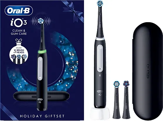 34 Händlerangebote bei billiger.de - Kategorie: Elektrische Zahnbürsten - Oral-B - INHALT: Oral-B elektrische iO Zahnbürste inkl 1 Aufsteckbürste (Ultimative Reinigung), Aufsteckbürsten-Etui, Ladestation TESTSIEGER bei Stiftung Warentest (Ausgabe 12/2024) mit Note GUT (1,9) Die FORTSCHRITTLICHSTE TECHNOLOGIE von Oral-B entfernt 100 Prozent mehr Plaque FüR GESüNDERES ZAHNFLEISCH IN NUR 1 WOCHE ggü. einer Handzahnbürste SCHüTZT DAS ZAHNFLEISCH mit der iO Andruckkontrolle - die Einzige von Oral-B, die mit grünem Licht den GUTEN DRUCK für eine effektive und sanfte Reinigung anzeigt PERSONALISIERTES ZäHNEPUTZEN dank 3 Putzprogrammen für individuelle Bedürfnisse: Tägliche Reinigung, Sensitiv und Aufhellen REINIGUNG PERFEKTIONIEREN mit dem visuellen TIMER €“ leuchtet bunt, wenn die von ZahnärztInnen empfohlene Putzzeit von 2 Minuten erreicht wurde €“ mit ERINNERUNG an den BüRSTENKOPFWECHSEL Die RUNDEN BüRSTENKöPFE von Oral-B erreichen die Stellen, die längliche Handzahnbürsten nicht erreichen - DIE GUTE REINIGUNG von der Zahnbürstenmarke, die ZahnärztInnen weltweit am häufigsten selbst verwenden ENTSPANNTES ZäHNEPUTZEN zuhause und unterwegs mit ZUVERLäSSIGEM, LANGLEBIGEM LITHIUM-IONEN AKKU - GTIN:8006540731536 Dieses Angebot von Media Markt Online Shop für 63 Euro beinhaltet die Oral-B iO Series 3 als Geschenkedition mit Reise-Etui und 3 Aufsteckbürsten, was ein umfassendes Paket darstellt. ![]() ![]() ORAL-B IO SERIES 3, Geschenkedition, Reise-Etui, inkl. 3 Aufsteckbürsten Elektrische Zahnbürste Schwarz, Reinigungstechnologie: Mikrovibrationen