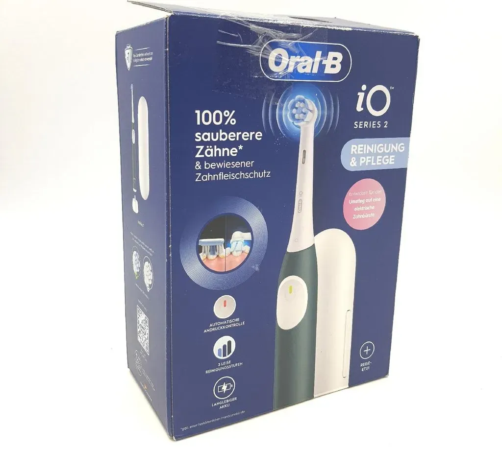 Kategorie: Elektrische Zahnbürsten - Oral-B - GTIN:8700216615204 - Die Zähne 100 % sauberer als mit einer herkömmlichen Handzahnbürste dank der iO-Technologie von Oral-B: stark gegen Plaque, sanft zum Zahnfleisch.Einfacher Wechsel zu einer elektrischen Zahnbürste per Knopfdruck, leise Putzstufen und lange AkkulaufzeitSchont die Zahnsubstanz dank der automatischen Druckkontrolle, die die Bewegungen verlangsamt und mit einem roten Licht signalisiert, wenn zu stark geputzt wirdBietet eine grundlegende Zahnreinigung mit 3 einfachen Putzstufen de: sehr empfindlich, empfindlich und tägliche ReinigungPerfekte Reinigung mit the timer de 2 Minuten, der alle 30 Sekunden vibriert und wenn the die von Zahnärzten empfohlene Putzzeit de 2 Minuten erreicht ist.BATTERIE DE ION DEDEDE LITHIUM DEDURATION ZUVERLäSSIG mit deBatterieanzeigeDie runden Bürstenköpfe de Oral-B erreichen Stellen, die lange Handzahnbürsten de nicht erreichen. Für die Grundreinigung de die brand de Zahnbürsten de Nummer 1, die Zahnärzte de in der ganzen the Welt am häufigsten selbst verwenden.Einfacher deto switch to Oral-B iO für bemerkenswert saubere Zähne Oral-B iO Series 2 Forest Green ZahnbürsteDie Oral-B iO-Technologie sorgt für spürbar sauberere Zähne im Vergleich zu einer herkömmlichen Handzahnbürste kraftvoll gegen Plaque, aber sanft zum Zahnfleisch. Der Umstieg auf eine elektrische Zahnbürste war noch nie so einfach: Mit nur einem Knopfdruck, leisen Reinigungsstufen und einem langlebigen Akku bietet sie ... Jetzt live Meta-Preisvergleich starten! Oral-b io 3 Testberichte