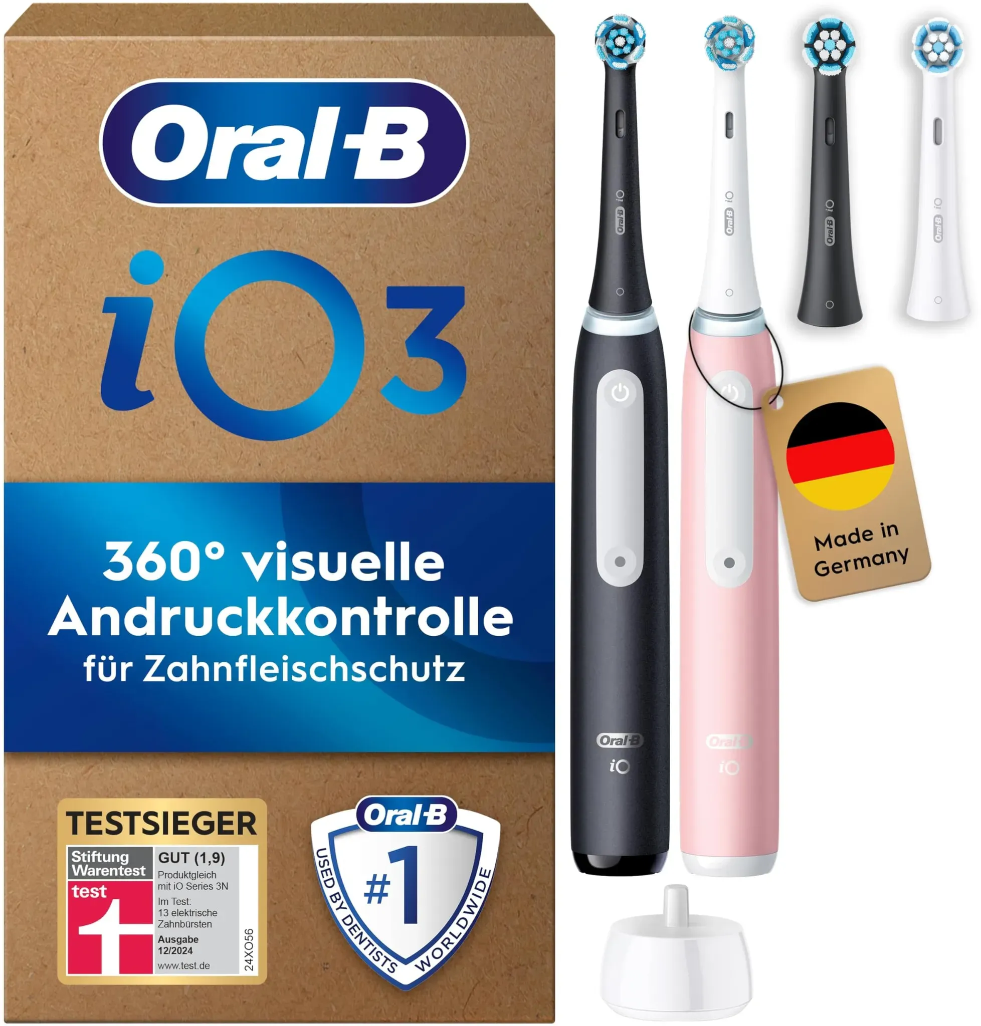 1 Händlerangebote bei billiger.de - Kategorie: Elektrische Zahnbürsten - Oral-B - INHALT: 2 Oral-B elektrische iO Zahnbürsten inkl 4 Aufsteckbürsten (2x Ultimative Reinigung, 2x Sanfte Reinigung), Ladestation (geliefert in einer braunen, unbedruckten FSC-ZERTIFIZIERTEN KARTONVERPACKUNG) TESTSIEGER bei Stiftung Warentest (Ausgabe 12, 2024) mit Note GUT (1,9) Die FORTSCHRITTLICHSTE TECHNOLOGIE von Oral-B entfernt 100 Prozent mehr Plaque FüR GESüNDERES ZAHNFLEISCH IN NUR 1 WOCHE ggü einer Handzahnbürste SCHüTZT DAS ZAHNFLEISCH mit der iO Andruckkontrolle - die Einzige von Oral-B, die mit grünem Licht den DRUCK für eine effektive und sanfte Reinigung anzeigt PERSONALISIERTES ZäHNEPUTZEN dank 3 Putzprogrammen für individuelle Bedürfnisse: Tägliche Reinigung, Sensitiv und Aufhellen REINIGUNG mit dem visuellen TIMER €“ leuchtet bunt, wenn die von ZahnärztInnen empfohlene Putzzeit von 2 Minuten erreicht wurde €“ mit ERINNERUNG an den BüRSTENKOPFWECHSEL Die RUNDEN BüRSTENKöPFE von Oral-B erreichen die Stellen, die längliche Handzahnbürsten nicht erreichen - DIE REINIGUNG von der Zahnbürstenmarke, die ZahnärztInnen weltweit am häufigsten selbst verwenden ENTSPANNTES ZäHNEPUTZEN zuhause und unterwegs mit ZUVERLäSSIGEM, LANGLEBIGEM LITHIUM-IONEN AKKU - GTIN:8700216635875 ![]() ![]() Oral-B iO Series 4 Plus Edition Elektrische Zahnbürste/Electric Toothbrush, PLUS 3 Aufsteckbürsten, 4 Putzmodi für Zahnpflege, Reiseetui, Designed by Braun, matt schwarz