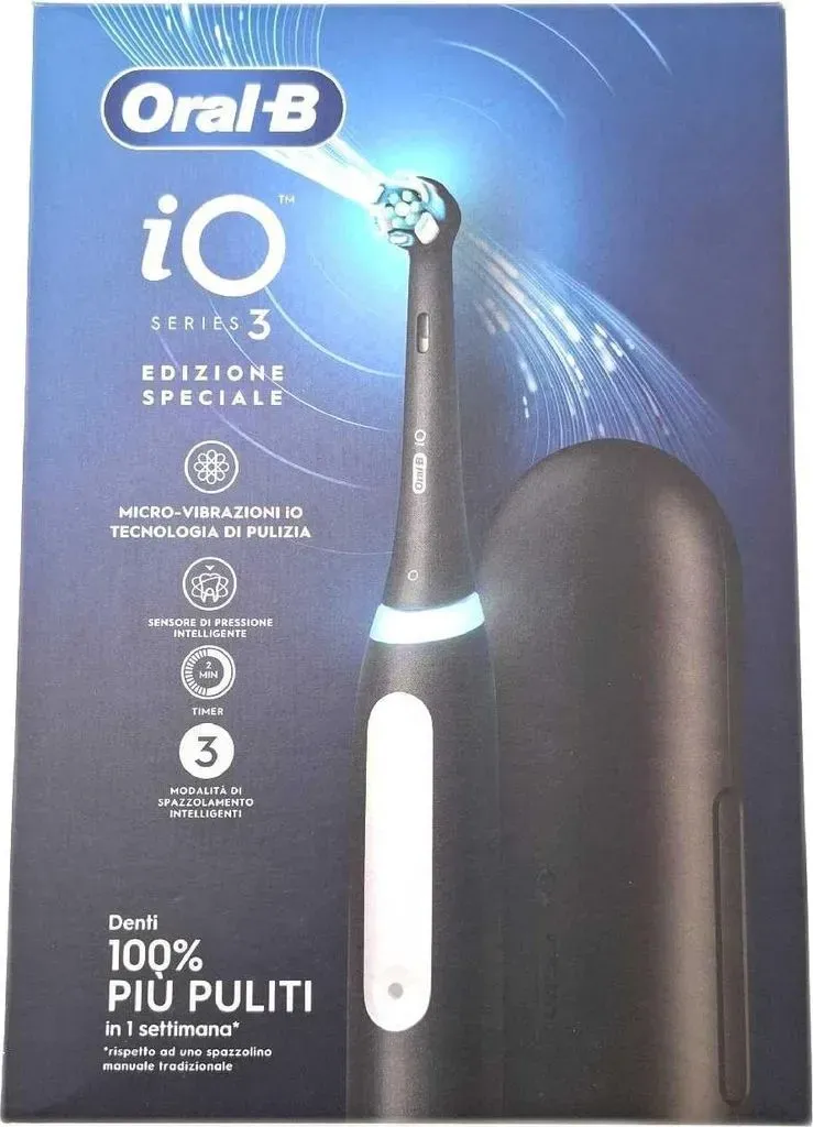 Zustand: Gebraucht - Rotierend Rotierende elektrische Zahnbürsten - Oral-B Procter & Gamble - 8006540730751 - EAN: 8006540730751 - Die beste Reinigung von Oral-B mit revolutionärer iO-Technologie für ein professionelles reinigendes Bürsten und ein sanftes Erlebnis Kombiniert die einzigartige runde Bürste von Oral-B mit sanften Mikrovibrationen für ein frisches und sauberes Mundgefühl und 100% gesünderes Zahnfleisch in einer Woche im Vergleich zu einer herkömmlichen Handzahnbürste 3 Putzmodi zur Personalisierung Ihrer Bürste: Sauberkeit, Weichheit, Weiß Der Smart Drucksensor warnt Sie mit Hilfe einer roten, weißen oder grünen Warnung, wenn Sie zu viel Druck ausüben, nicht genug oder wenn Sie Ihre Zähne genau richtig putzen Lieferumfang: 1 x iO3-Griff, 1 x Bürste, 1 x Ladegerät, 1 x Bürstenhalter - 3 Händler im amazon.de Marketplace Für 56.83 Euro erhalten Sie die Oral-B iO Series 3 in Schwarz, die von Stiftung Warentest als Testsieger ausgezeichnet wurde, was für Qualität spricht. ![]() ![]() Oral-B iO Series 3 Elektrische Zahnbürste ? Electric Toothbrush, Inkl. 1 Aufsteckbürste, Reise-Etui ? 3 Putzmodi für Zahnpflege, Designed by Braun, TESTSIEGER Stiftung Warentest (12/2024), Schwarz