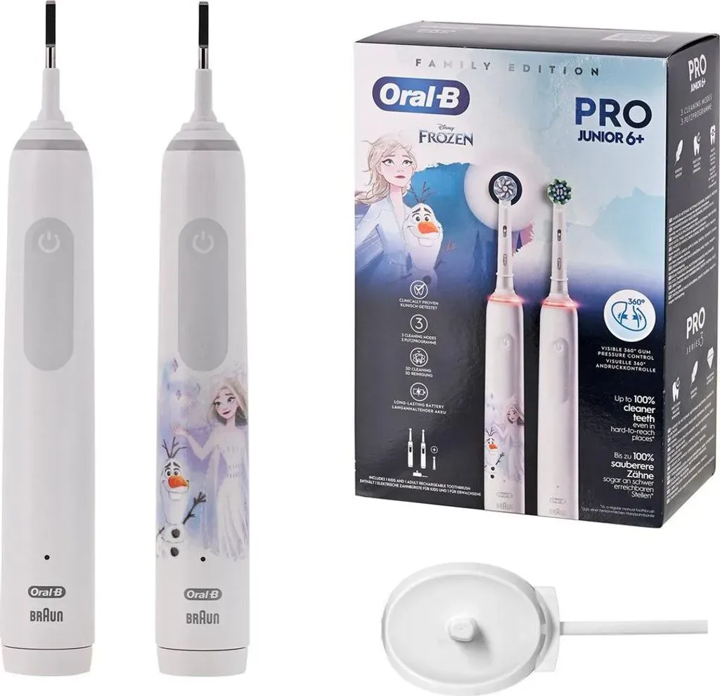 2 Händlerangebote bei billiger.de - Kategorie: Elektrische Zahnbürsten - Braun - Funktionen Zahnputzmodi: Sensitiv, Tägliche Pflege, AufhellungBürstenform: RundZweck: Kinder, ErwachseneIntegrierter Timer: JaZahnbürstentyp: RotationszahnbürsteAnzahl der Zahnputzmodi: 3Thema: Die EisköniginGrifffarbe: WeißEinstellbare Geschwindigkeit: JaProduktfarbe: WeißZahnfleischdruckkontrolle: Ja Stromversorgung Ladestation: JaBatteriebetrieben: JaStromquelle: BatterieWiederaufladbar: JaBatterietyp: Eingebauter AkkuBatterie schwach Anzeige: JaAkkutechnologie: Lithium-Ionen (Li-Ion)Akkulaufzeit (max.): 336 h Verpackungsdaten Verpackungsart: Box Verpackungsinhalt Anzahl der enthaltenen Griffe: 2 StückAnzahl der enthaltenen Bürstenköpfe: 2 StückLadegerät: Ja Sicherheitswarnung Warnhinweise:Entsorgen Sie das Gerät gemäß den örtlichen Vorschriften für Elektronikschrott.,Außerhalb der Reichweite von Kindern aufbewahren.,Tauchen Sie das Gerät nicht in Wasser. Braun Oral-B Pro 3 3000 Weiss+Oral-B Junior Gefroren 8006540784501 AllgemeinesTypSonstiges HaushaltsgerätFarbeWeiß Oral-B Pro 3 3000 White + Oral-B Junior Frozen 6+ Set of rotating toothbrushes - GTIN:8006540784501 Die Olympia Special Edition bietet ein besonderes Design und ist preislich im mittleren Segment angesiedelt. ![]() ![]() Oral-B Pro 3 3000 Olympia Special Edition weiß