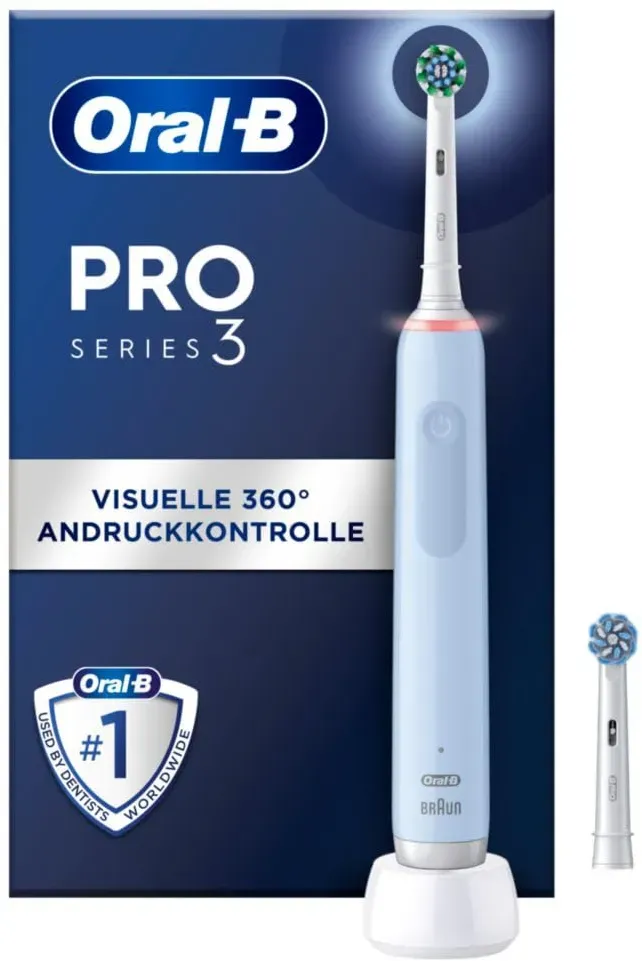 Kategorie: Elektrische Zahnbürsten - Oral-B - GTIN:4210201289494 - Tiefenreinigung und gesünderes Zahnfleisch mit der elektrischen Zahnbürste dank 3D-Technologie und visueller 360 -Andruckkontrolle Für eine Zahnreinigung, die begeistert entfernt Bakterien und bis zu 100 % mehr Plaque als eine Handzahnbürste 3 Reinigungsmodi: Tägliche Reinigung, Aufhellen und Sensitiv Der Lithium-Ionen-Akku hält mit einer Vollladung mehr als 2 Wochen Der integrierte 2-Minuten-Timer hilft dabei, die von Zahnärzten empfohlene Putzzeit von 2 Minuten einzuhalten Lieferumfang: 1 Handstück mit Ladestation, 1 Sensitive Clean Aufsteckbürste Oral-B, die Zahnbürstenmarke Nr.1, die von Zahnärzten weltweit am häufigsten empfohlen wird 30 Tage risikofrei testen: Mehr Details auf unserer Website - 52,99 Euro bei Amazon Marketplace Health & Personal Care - gefunden von billiger.de Ein umfassendes Paket mit 2 CrossAction Aufsteckbürsten und 3 Putzmodi, ideal für eine gründliche Reinigung. ![]() ![]() Oral-B PRO 3 3000 Elektrische Zahnbürste/Electric Toothbrush, 2 CrossAction Aufsteckbürsten, mit 3 Putzmodi und visueller 360 Andruckkontrolle für Zahnpflege, Geschenk Mann/Frau, blau