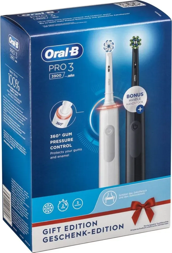 Elektrische Zahnbürsten Kfz, Hobby & Haushalt Körperpflege & Wellness Mundpflege & Zahnpflege Elektrische Zahnbürsten, Mundduschen - EAN:8006540760277 - - gefunden von Kelkoo Dieses Duopack in Black-White Edition für 75,25 Euro bietet eine attraktive Farbkombination für zwei Zahnbürsten. ![]() ![]() Oral-B PRO 3 3900 Duopack Black-White Edition - Weiß