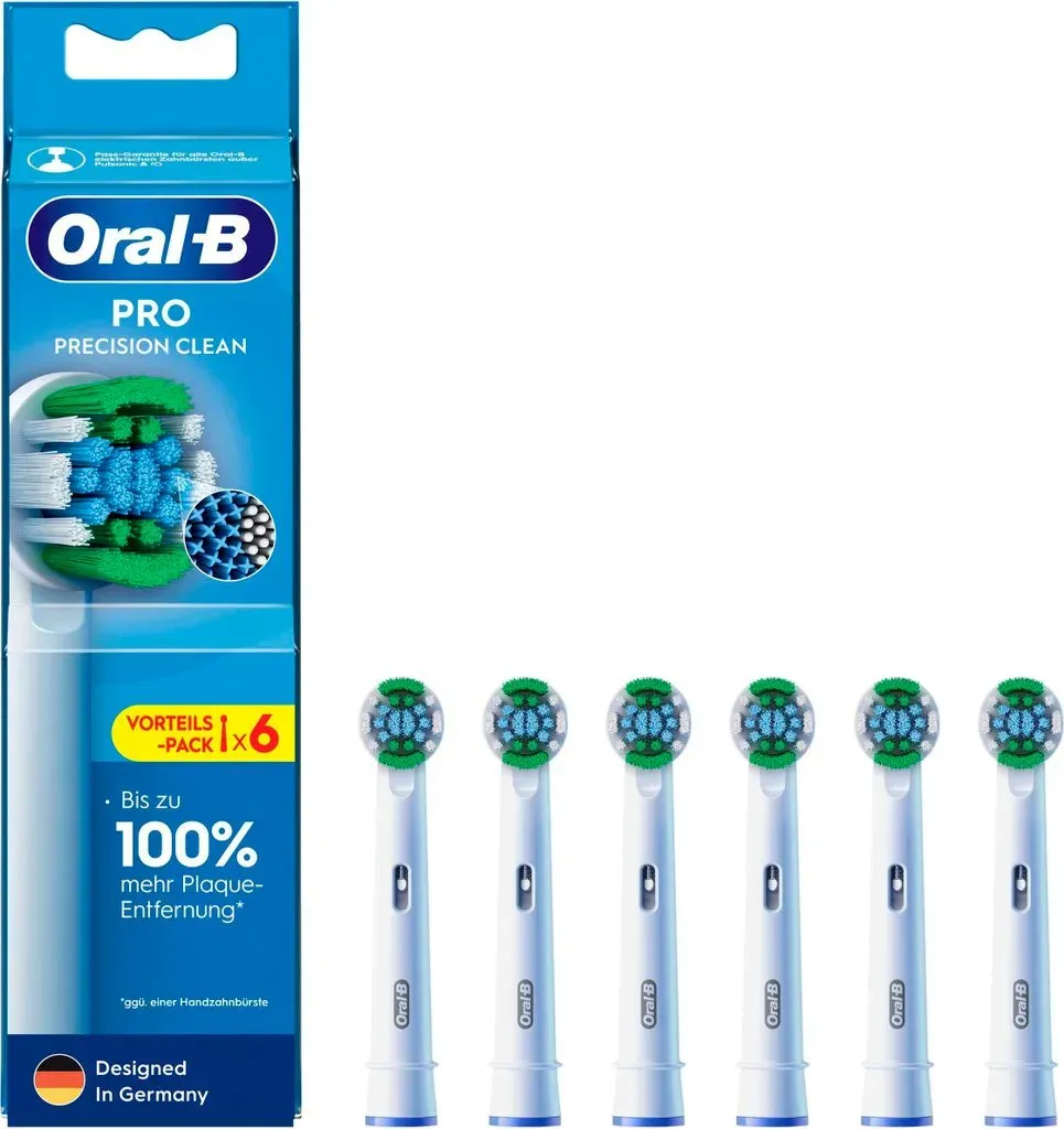 1 Händlerangebote bei billiger.de - Kategorie: Zahnpflegeartikel - Oral-B - Die Aufsteckbürsten Pro Precision Clean 8er AM von Oral-B sind die perfekte Ergänzung für Ihre tägliche Mundhygiene. Mit ihrer innovativen Technologie und hochwertigen Materialien sorgen sie für eine gründliche Reinigung und ein frisches Mundgefühl. Die Bürstenköpfe sind speziell für die Verwendung mit Oral-B elektrischen Zahnbürsten entwickelt und passen perfekt auf alle Modelle. Sie sind mit einer präzisen Reinigungstechnologie ausgestattet, die bis zu 100% mehr Plaque entfernt als herkömmliche Handzahnbürsten. Die 8er Packung bietet Ihnen einen Vorrat für mehrere Monate und ist somit besonders praktisch für unterwegs oder für die ganze Familie. Jeder Bürstenkopf ist mit Indikatorborsten ausgestattet, die Ihnen anzeigen, wann es Zeit ist, den Bürstenkopf auszutauschen. Die Aufsteckbürsten Pro Precision Clean 8er AM sind besonders sanft zu Zähnen und Zahnfleisch und sorgen für eine schonende Reinigung. Sie sind auch für empfindliche Zähne geeignet und bieten eine gründliche Reinigung ohne dabei das Zahnfleisch zu reizen. - GTIN:8006540861165 Dieses Paket mit 6 Aufsteckbürsten bietet eine gute Balance zwischen Menge und Preis. ![]() ![]() Oral-B Pro Precision Clean Aufsteckbürsten 6 St.