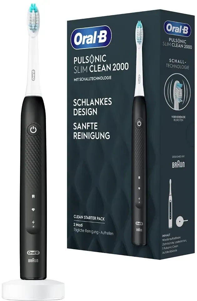 Kategorie: Elektrische Zahnbürsten - Oral-B - GTIN:4210201396208 - Oral-B Pulsonic Slim Clean 2000 in schwarzEigenschaften: -Farbe: Schwarz -Reinigungstechnologie: Schall -Bürstenkopfbewegungen: 39 000 pro Minute -Ink - 38,90 Euro bei TECHNIKdirekt - gefunden von billiger.de Dieses Angebot von Joybuy hebt die zwei Putzmodi und den Timer hervor, was für viele Nutzer wichtig ist. ![]() ![]() Oral-B Pulsonic Slim Clean 2000 Elektrische Schallzahnbürste, 2 Putzmodi für Zahnpflege und gesundes Zahnfleisch mit Timer, Design von Braun, Schwarz, 1 Stück (Packung mit 1)