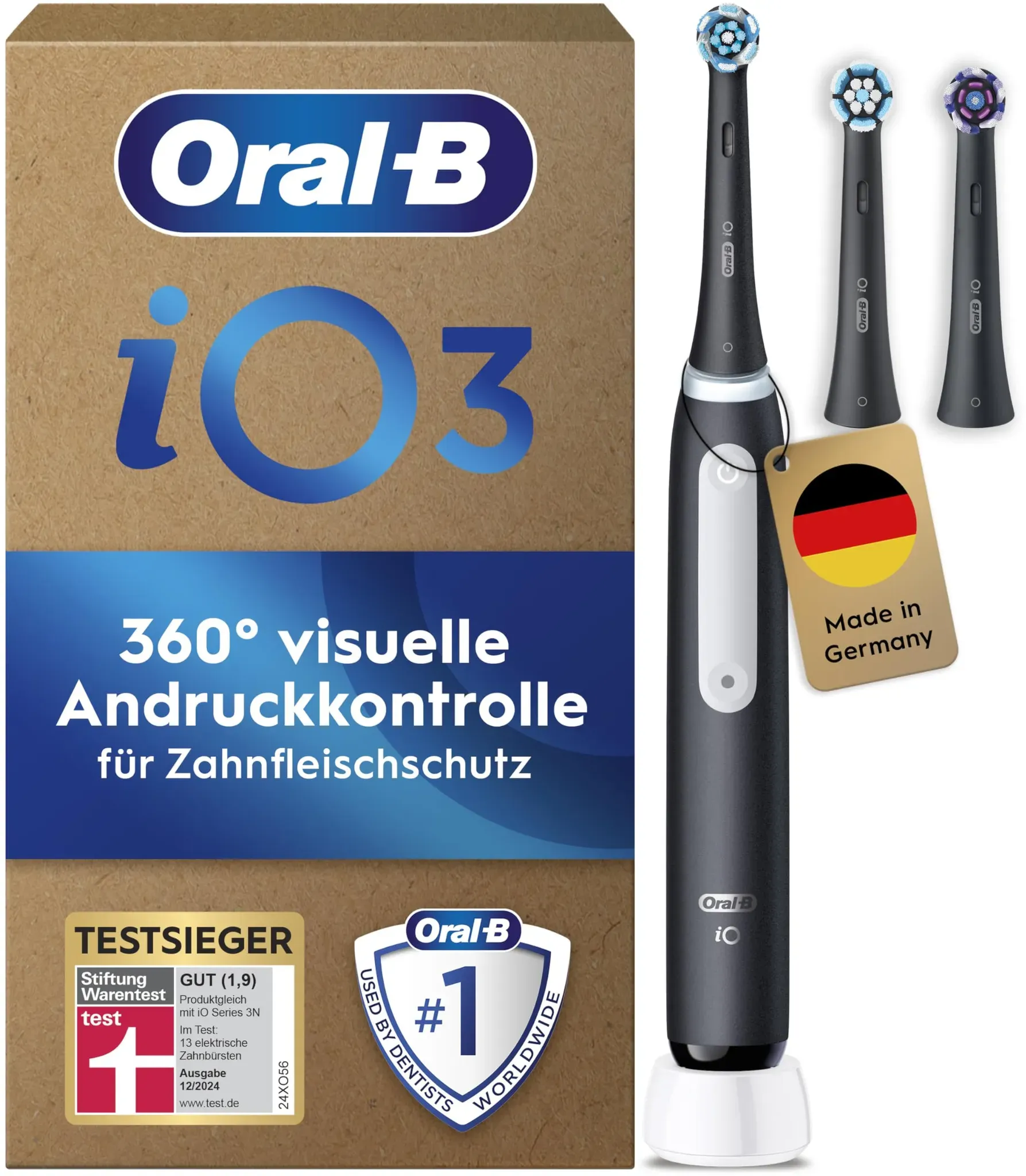 Oral-B - EAN: 08006540730744 - - bei conrad.de - aus Yadore Produktdaten Die iO Series 3 Plus Edition ist ein Testsieger der Stiftung Warentest und kommt mit drei Aufsteckbürsten. ![]() ![]() Oral-B iO Series 3 Plus Edition Elektrische Zahnbürste €” Electric Toothbrush, Inkl. 3 Aufsteckbürsten, 3 Putzmodi für Zahnpflege, Designed by Braun, TESTSIEGER Stiftung Warentest (12-2024) €” Schwarz