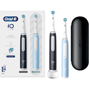 Kategorie: Elektrische Zahnbürsten - Oral-B - GTIN:8006540731659 - Die Oral-B iO übertrifft alle Erwartungen einer Zahnbürste mit unvorstellbarer Reinigungsleistung und einem sensationellen Mundgefühl. Das innovative, magnetische Antriebssystem der Oral-B iO liefert Energie punktgenau an die Borstenspitzen, die mit sanften Mikrovibrationen von Zahn zu Zahn gleiten, um ein effektives und angenehmes Putzerlebnis zu erzielen. Genieße jeden Tag ein frisches Gefühl wie vom Zahnarzt! Die intelligente Andruckkontrolle warnt mit rotem Licht vor zu viel Druck und leuchtet grün, wenn du den optimalen Druck verwendest. Wähle zwischen 3 Putzprogrammen für unterschiedliche Mundpflegebedürfnisse. Ein gelbes Licht signalisiert außerdem, wann der Bürstenkopf gewechselt werden sollte. Der Timer gibt Auskunft über die empfohlene Putzzeit von 2 Minuten. Erlebe jetzt ein Zahnputzerlebnis, das begeistert! Produkteigenschaften: - SCHüTZT DAS ZAHNFLEISCH mit der iO Andruckkontrolle - die Einzige von Oral-B, die mit grünem Licht den PERFEKTEN DRUCK für eine effektive und sanfte Reinigung anzeigt - PERSOLISIERTES ZäHNEPUTZEN dank 3 Putzprogrammen für individuelle Bedürfnisse: Tägliche Reinigung, Sensitiv & Aufhellen - REINIGUNG PERFEKTIONIEREN mit dem visuellen TIMER – leuchtet bunt, wenn die von Zahnärzten empfohlene Putzzeit von 2 Minuten erreicht wurde – mit ERINNERUNG an den BüRSTENKOPFWECHSEL - Die RUNDEN BüRSTENKöPFE von Oral-B erreichen die Stellen, die längliche Handzahnbürsten nicht ... Dieses Duopack der iO Series 3 in Schwarz/Blau ist eine gute Wahl für Paare, die die Vorteile der iO-Technologie gemeinsam nutzen möchten. ![]() ![]() Oral-B Elektrische-Zahnbürste iO Series 3, Duopack, Black/Blue, 3 Putzmodi, mit 2 Zahnbürsten