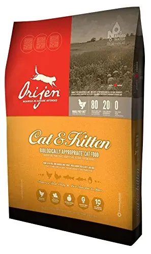 Verfügbarkeit: 1-2 Werktage - 29,38 €/kg - Kategorie: Katzenfutter - Orijen - GTIN:0064992281342 - Das Orijen 6-Fish Cat Katzenfutter ist biologisch angemessenes Futter für Katzen jeden Alters. Der Fisch wird bei Orijen stets wild gefangen. Frische Pazifik-Sardinen, Makrelen, Hecht, Flunder, Rotbarsch und Seezunge sorgen bei Adult 6-Fish Dog .. - 9,99 Euro bei koempf24.de - gefunden von billiger.de Dieses Angebot ist mit 9,99 Euro eine preiswerte Möglichkeit, Orijen Cat & Kitten in einer kleinen Menge zu testen. ![]() ![]() Orijen Cat & Kitten 340 g