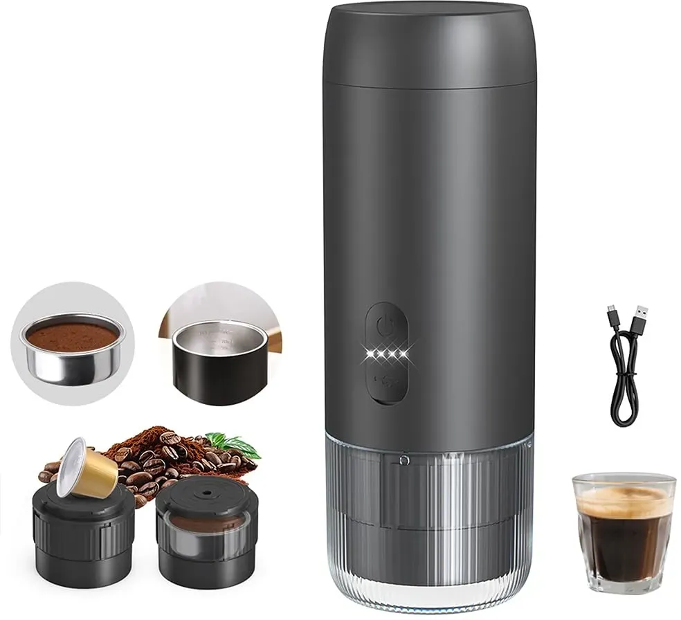 Auf Lager Versand durch AmazonOrkeyDolk® 2-in-1 Tragbare Elektrische Espressomaschine, Reise-Kaffeemaschine für Camping, Auto-Kaffeemaschine mit USB-C, kompatibel mit Kaffeepulver und Kapseln für Wohnmobil, Wandern, Büro