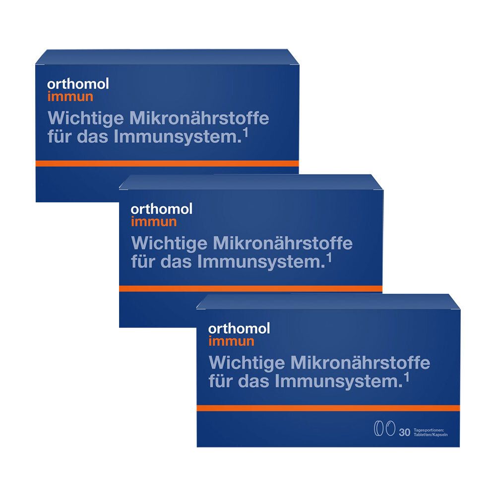 Der angezeigte Preis könnte seit dem letzten Update gestiegen sein - EAN: 4150081084737 - Nahrungsergänzungsmittel sind kein Ersatz für eine ausgewogene und abwechslungsreiche Ernährung und eine gesunde Lebensweise. Der natürliche immunologische Rundumschutz Ein starker Beschützer durchs Leben. Was wir auch tun - arbeiten, Sport treiben,... - Zustand: NEW - bei SHOP APOTHEKE - gefunden von Buycentral Dieses Dreierpack Tabletten/Kapseln ist eine kosteneffiziente Wahl für eine dreimonatige Versorgung. ![]() 3x Orthomol Immun 30 Tabl./Kaps.Kombipackung 3x30 St Kombipackung