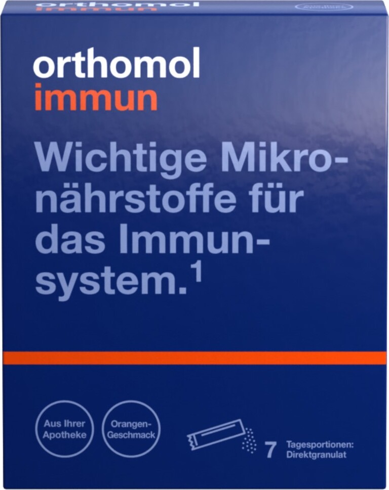 EAN: 4150188247301 - - enthält hochwertige Vitalstoffe - zur gezielten Versorgung - Granulat zur Herstellung einer Lösung zum Einnehmen - gesundes Lebensmittel aus der Apotheke - Hersteller: Hersteller: Orthomol Pharmazeutische Vertriebs GmbH, Deutschland (Originalprodukt aus Deutschland) - PZN: 18824730 - bei kaufland.de - aus Yadore Produktdaten Dieses Angebot für Orthomol Immun Direktgranulat mit Orangengeschmack ist eine praktische und schmackhafte Option für 7 Tage. ![]() kaufland.d e Orthomol Immun - Mikronährstoffe zur Unterstützung des Immunsystems - mit Vitamin C, Vitamin D und Zink - Orangen-Geschmack, 7 St. Tagesportionen 07145977