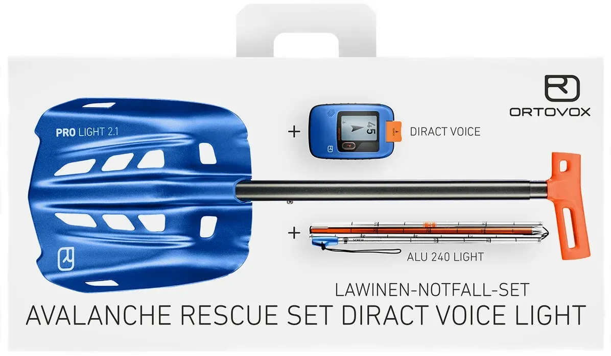 Ortovox - EAN: 4251422538220 - Das RESCUE SET DIRACT VOICE LIGHT bietet ein Notfall-Set für gewichtsorientierte Wintersportlern mit einer innovativen und extrem leichten LVS-Ausrüstung für Backcountry-Abenteuer. Bei der Auswahl der Komponenten haben wir extrem leichte und besonders intuitive Produkte gewählt, die selbst in stressigen Situationen spielerisch beherrscht werden können. Set-Inhalt: DIRACT VOICE: intuitives LVS-Gerät mit Sprachnavigation SONDE ALU 240 LIGHT: extrem leichte Alu-Lawinensonde SCHAUFEL PRO LIGHT: extrem leichte, effektive Alu-Schaufel mit ergonomischem Griff DIRACT VOICE Das DIRACTVOICE mit integrierter Sprachnavigation vereint intuitive Bedienung mit modernster Technik und handlichem, durchdachten Design. Es ist auf einen Funktionsknopf reduziert und sorgt dank klaren Ansagen, Symbolen und 360 Echtzeit-Anzeige für die intuitive Benutzerführung in Stresssituationen. Ausgestattet mit der patentierten SMART-ANTENNA-TECHNOLOGIE werden Verschüttete mit dem DIRACT VOICE deutlich besser gefunden. Das Gerät analysiert die Lage in der Lawine und schaltet automatisch auf die beste Sendeantenne um. Modernste, digitale 3-Antennen Technik ist bei ORTOVOX ebenso selbstverständlich wie die automatische Nachlawinenumschaltung. Außer den Modi SEND und SEARCH gibt es einen Standby-Modus für die Signalunterdrückung während der Suche. Die aufladbare Lithium-Ionen-Batterie liefert selbst bei -20 C verlässlich Energie und ist besonders langlebig und umweltfreundlich. ... Dieses Rescue Set bietet eine umfassende Ausstattung für maximale Sicherheit im alpinen Gelände. ![]() ![]() Ortovox Rescue Set Diract Voice Light