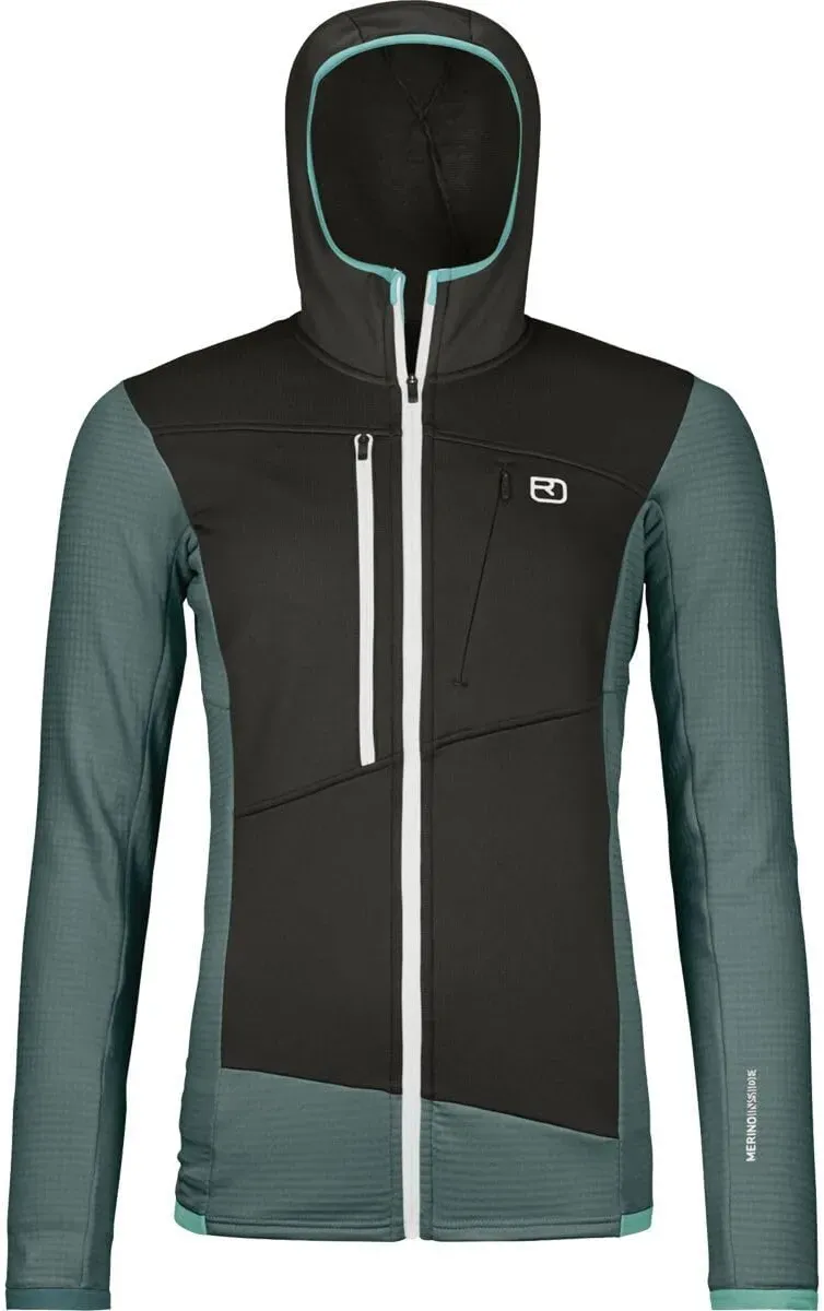 2 Händlerangebote bei billiger.de - Kategorie: Fleecejacken - Ortovox - So vielseitig wie der Berg: Dank cleverem Materialmix bietet der FLEECE GRID HOODY für Herren auf anspruchsvollen Touren angenehme Wärme bei gleichzeitig guter Belüftung. Das MERINO FLEECE GRID Material bindet in seiner feinen Waffelstruktur warme Luft auf der Innenseite und gibt Feuchtigkeit nach außen ab, sodass der Hoody einerseits angenehm wärmt, andererseits aber auch schnell trocknet und äußerst atmungsaktiv ist. Die angenehm weiche Merinowolle auf der Haut sorgt für eine optimale Klimaregulierung und wirkt gleichzeitig geruchshemmend. An exponierten Stellen wie Brust, Schultern und Kopf schützen Einsätze aus elastischem und atmungsaktiven MERINO FLEECE LIGHT vor Wind und Kälte. Zwei rucksackkompatible Brusttaschen bieten Platz für Kartenmaterial, Handy oder Riegel. Die eng anliegende Kapuze passt gut unter den Helm und schützt den Kopf an kalten Tagen. Dank des hohen Stretchvermögens und des großzügigen Schnitts im Schulterbereich bietet der Hoody optimale Bewegungsfreiheit und macht als alpiner Allrounder jedes Abenteuer mit. Geschlecht: Herren Größe: M-XL Schützende Kapuze 2 Brusttaschen Regular Fit Mit Kapuze Full Zip Farbe: glacier grey Gewicht: 378 g Material: Material 1: 66 % Polyester, 21 % Wolle (OWP-MERINO), 7 % Polyamid, 6 % Elasthan Material 2: 67 % Polyester, 26 % Schurwolle (MERINO), 7 % Elasthan| - GTIN:4255736205830 Dieser Herren Fleece Grid Hoody in Wild Herbs zu 192.5 Euro ist eine beliebte Farboption. ![]() ![]() Ortovox Fleece Grid Hoody M wild herbs