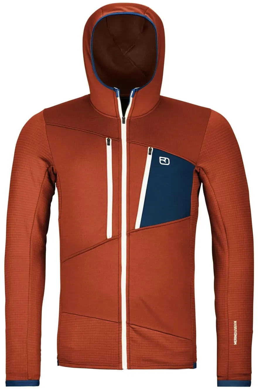 Kategorie: Fleecejacken - Ortovox - GTIN:4251877776482 - So vielseitig wie der Berg: Dank cleverem Materialmix bietet der FLEECE GRID HOODY für Damen auf anspruchsvollen Touren angenehme Wärme bei gleichzeitig guter Belüftung. Das MERINO FLEECE GRID Material bindet in seiner feinen Waffelstruktur warme Luft auf der Innenseite und gibt Feuchtigkeit nach außen ab, sodass der Hoody einerseits angenehm wärmt, andererseits aber auch schnell trocknet und äußerst atmungsaktiv ist. Die angenehm weiche Merinowolle auf der Haut sorgt für eine optimale Klimaregulierung und wirkt gleichzeitig geruchshemmend. An exponierten Stellen wie Brust, Schultern und Kopf schützen Einsätze aus elastischem und atmungsaktiven MERINO FLEECE LIGHT vor Wind und Kälte. Zwei rucksackkompatible Brusttaschen bieten Platz für Kartenmaterial, Handy oder Riegel. Die eng anliegende Kapuze passt gut unter den Helm und schützt den Kopf an kalten Tagen. Dank des hohen Stretchvermögens und des großzügigen Schnitts im Schulterbereich bietet der Hoody optimale Bewegungsfreiheit und macht als alpiner Allrounder jedes Abenteuer mit. - 194,90 Euro bei intersport.de - gefunden von billiger.de Dieser Herren Fleece Grid Hoody in Clay Orange 50 zu 202.51 Euro bietet eine auffälligere Farboption. ![]() ![]() Ortovox Fleece Grid Hoody M Clay Orange 50 Herren