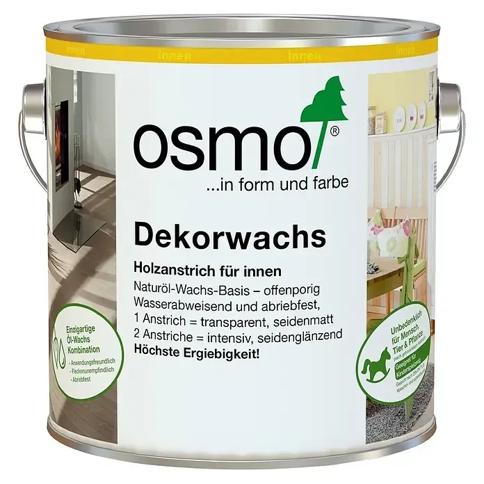 7 Händlerangebote bei billiger.de - Kategorie: Farben & Lacke - OSMO - OSMO TopOil 0,5 Liter. Wer sich heute einen neuen, großzügigen Esszimmertisch, eine attraktive Arbeitsplatte für die Küche oder sonstige Möbel zulegen möchte, stößt unweigerlich auf das wertvolle Naturmaterial Holz. Sie haben sich verliebt? Dann .. - GTIN:4006850754588 Dieses Dekorwachs in Weiß ist vielseitig einsetzbar für Möbel und Dekoartikel und bietet eine schöne seidenmatte Oberfläche. ![]() ![]() Osmo Dekorwachs (Weiß, 375 ml, Seidenmatt, Naturöl-Wachs-Basis)