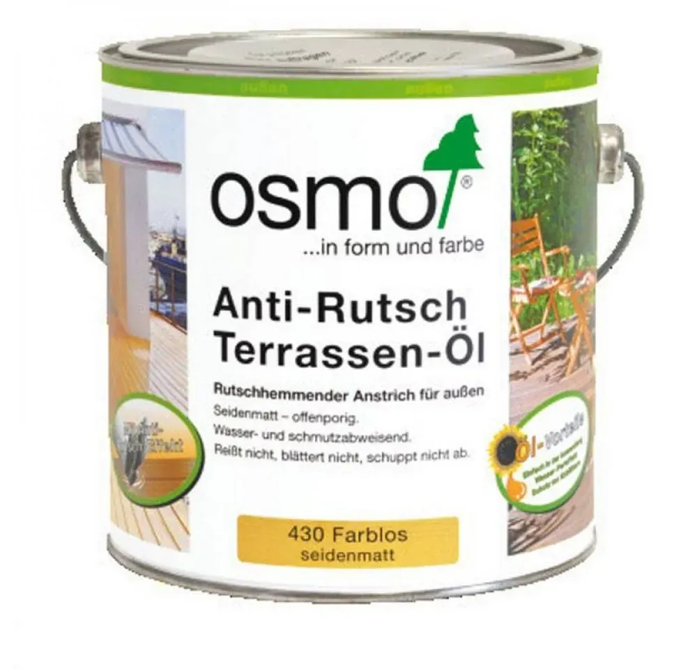 Verfügbarkeit: Auf Lager - Kategorie: Farben & Lacke - OSMO - GTIN:4006850066063 - OSMO Pflege-öl 3081 Farblos Seidenmatt 1L - 42,37 Euro bei Amazon Marketplace Health & Personal Care - gefunden von billiger.de Dieses Anti-Rutsch Terrassen-Öl ist besonders empfehlenswert für Terrassen und andere Außenbereiche, wo Rutschfestigkeit wichtig ist. ![]() ![]() OSMO Anti-Rutsch Terrassen-öl 430 farblos seidenmatt 2,5 l