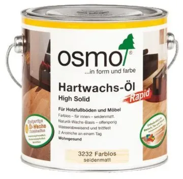 Verfügbarkeit: 1-2 Werktage - 38,43 €/l - Kategorie: Farben & Lacke - OSMO - GTIN:4006850326082 - Während es eine Selbstverständlichkeit ist, dass man einen Bodenbelag, insbesondere wenn es sich um Echtholz handelt, regelmäßig reinigt und pflegt, kommen Wand- und Deckenverkleidungen bisweilen etwas zu kurz. Damit diese großen Flächen ihre .. - 28,82 Euro bei koempf24.de - gefunden von billiger.de Das Hartwachs-Öl Express ist eine schnelle Lösung für alle, die eine zügige Trocknung und schnelle Wiederinbetriebnahme der behandelten Flächen benötigen. ![]() ![]() OSMO Hartwachs-öl Express Farblos seidenmatt 0,75 l