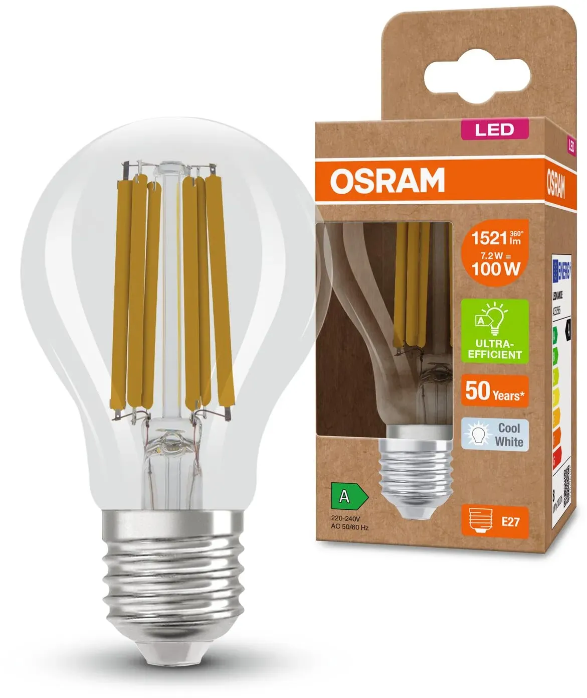 Sofort lieferbar | in 1-3 WerktagenOSRAM E27 besonders effiziente LED Lampe 7,2W wie 100W 4000K neutralweißes Licht - beste Energie Effizienz Klasse
