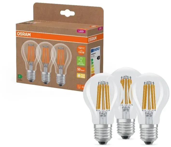 Sofort lieferbar | in 1-3 Werktagen3er OSRAM E27 besonders effizientes LED Leuchtmittel leistungsstark 7,2W wie 100W 2700K warmweißes Licht - beste Energie Effizienz Klasse