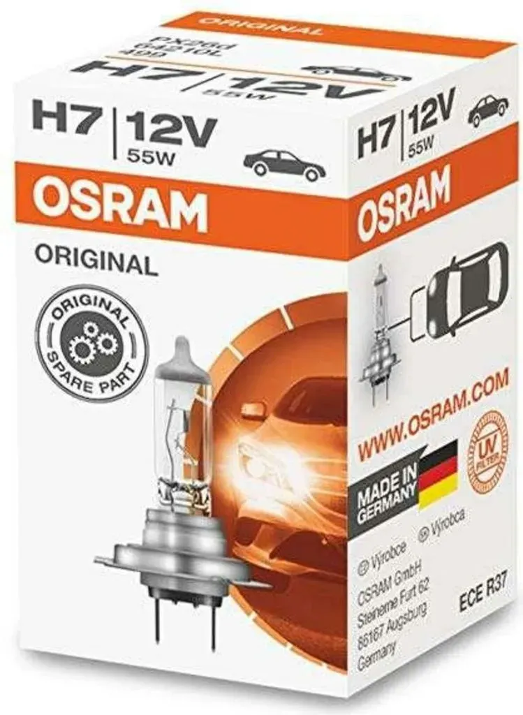 Zustand: Neu - Frontscheinwerfer Auto Frontscheinwerfer Glühlampen - Osram Osram Ltd. - 64210 - EAN: 4050300332185 - OSRAM ORIGINAL LINE: millionenfach in Fahrzeugen namhafter Hersteller bewährt! Bei dieser Lampe handelt es sich um ein Originalersatzteil mit gutem Preis-Leistungs-Verhältnis. Made in Germany: Unsere OSRAM ORIGINAL H7 unterliegt hohen Qualitätsrichtlinien, u.A. des Kraftfahrtbundesamtes, und wird in Deutschland mit ECE Zertifizierung gefertigt. Die OSRAM ORIGINAL LINE umfasst eine große Produktpalette von Scheinwerfer- bis hin zu Mini-Wattlampen und bietet somit immer eine passende Ersatzlampe in Erstausrüsterqualität. Überprüfen Sie bitte, ob diese Fassung mit Ihrem Auto kompatibel ist. - 31 Händler im amazon.de Marketplace Dieses Angebot ist eine sehr preiswerte Option für eine Longlife H7 Glühlampe, die eine längere Lebensdauer verspricht. ![]() ![]() Osram 64210L Halogen Leuchtmittel Original Line Longlife H7 55W 12V