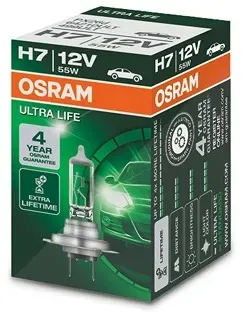 Verfügbarkeit: 1-3 Werktage - 3.12 €/Stück - Kategorie: Autolampen - Osram - GTIN:4008321416261 - Â OSRAM H7 Ultra Life Die robuste Lampe mit bis zu viermal längerer Lebensdauer OSRAM ULTRA LIFE Autolampen sind beinahe unschlagbar, wenn es um Langlebigkeit geht. Sie haben eine viermal längere Lebensdauer als herkömmliche Standard-Halogenlampen und halten bis zu 100.000 km (bei einer durchschnittlichen Jahreslaufleistung von 14.259 km, davon 60 % mit eingeschaltetem Licht). OSRAM bietet für seine zuverlässigen ULTRA LIFE Scheinwerferlampen eine 4-Jahres- . Zusätzlich zu diesen Vorteilen überzeugen die ULTRA LIFE Scheinwerferlampen durch ihr modernes Design mit Silberkuppe . Sie sind damit die ideale Wahl für Vielfahrer oder Tagfahrlichtnutzer und eignen sich auch für Klarglas-Scheinwerfer. - 3,12 Euro bei mein-motoroelshop - gefunden von billiger.de Für 3.42 Euro erhalten Sie hier eine einzelne Glühlampe zu einem sehr attraktiven Preis. ![]() ![]() OSRAM AUTOMOTIVE 4062172395205 Halogen Leuchtmittel Ultra Life H7 55 W 12 V
