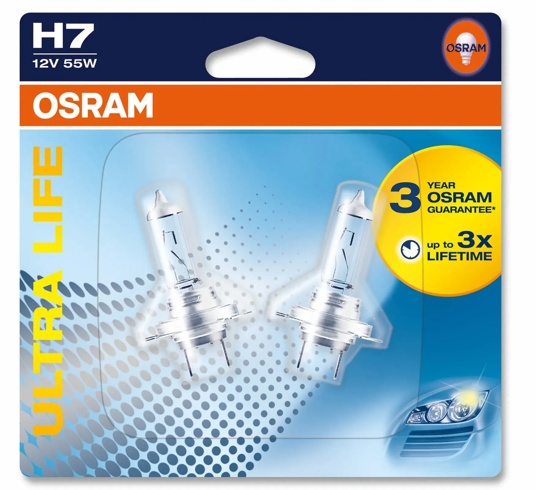 OSRAM - EAN: 4008321416261 - Osram H7 ULTRA LIFE Faltschachtel (64210ULT) - Technische Informationen: Lampenart: H7 Nennleistung: 55 Sockelausf.: PX26d Spannung: 12 - bei atp-autoteile.de - aus Yadore Produktdaten Dieses Angebot für 3.12 Euro ist eine weitere sehr preiswerte Option für eine einzelne Ultra Life H7. ![]() ![]() OSRAM H7 Ultra Life 3fache Lebensdauer ?&Stück=1 St%C3%BCck