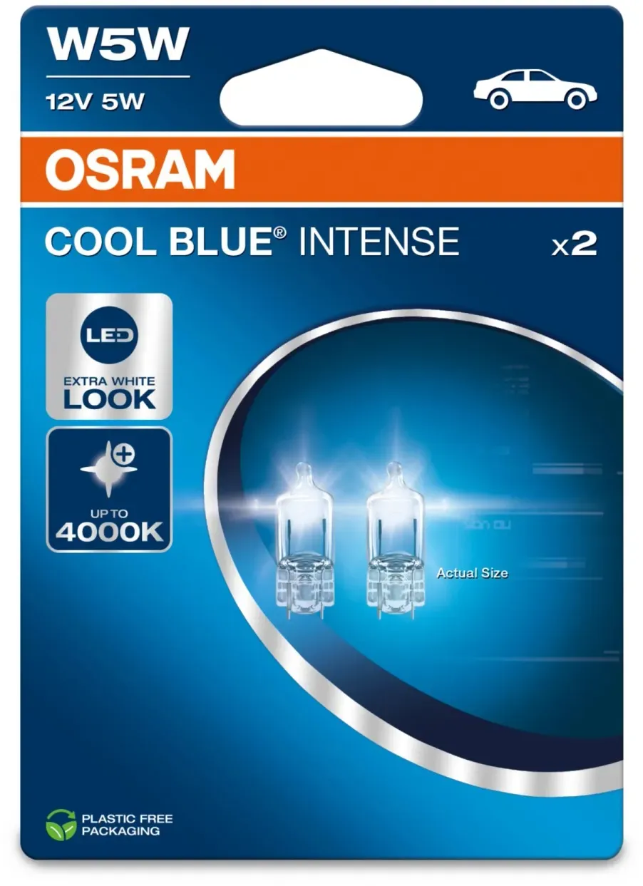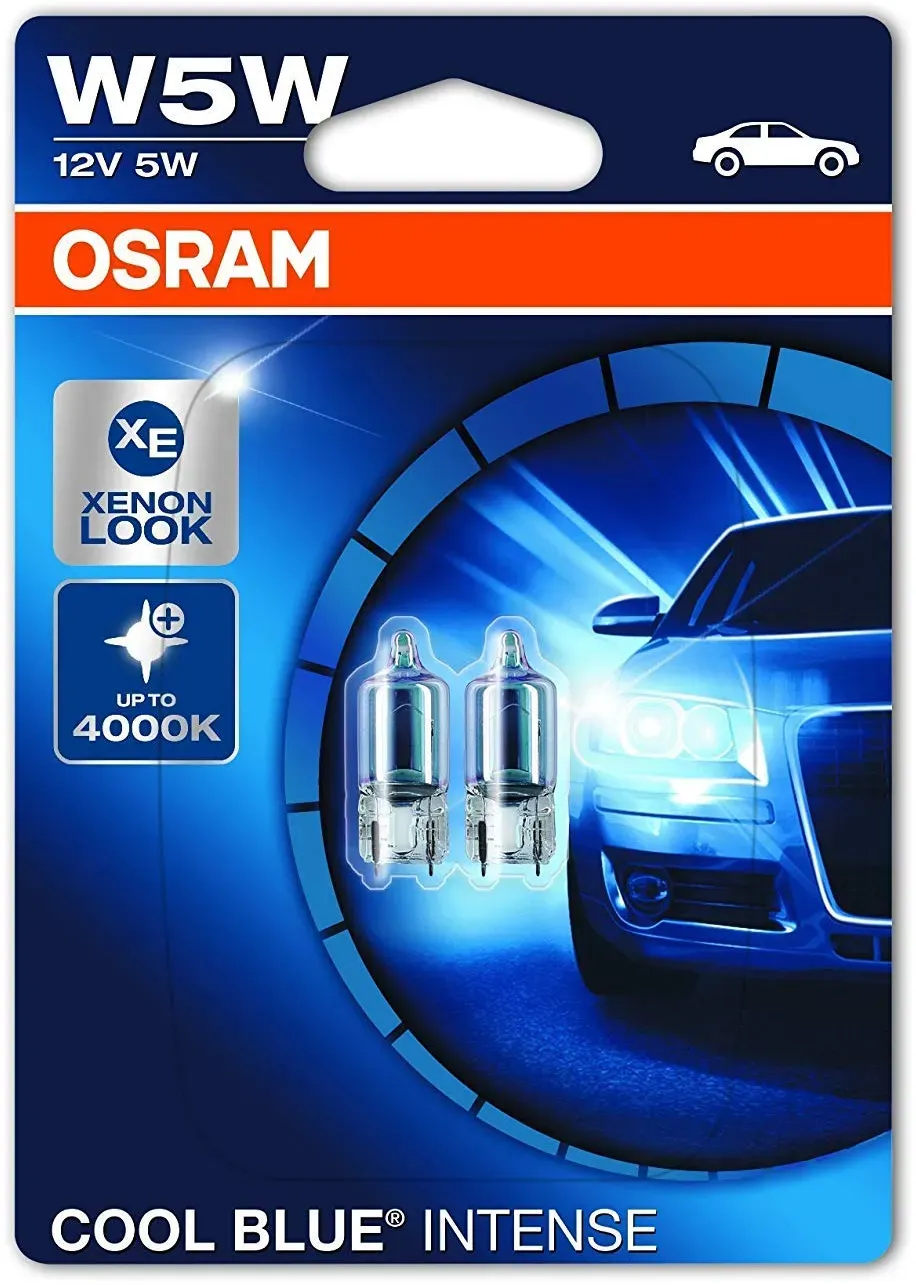 Kategorie: Autolampen - Osram - GTIN:6604977501276 - OSRAM COOL BLUE INTENSE W5W: Bläulich weißes Licht für stylischen Xenon-Look. Farbtemperatur bis zu 4000K und 20% mehr Helligkeit (im Vergleich zu Standardlampen). Ideal für starkes Licht zur Nummernschildbeleuchtung, als Innenbeleuchtung, als Positionslicht und/oder als Standlicht. Ausstauschbar mit Standardglühlampen: Birne mit W5W Fassung, 12V, 5W, W2.1x9.5d. Beste OSRAM Qualität für legale und ECE-konforme Signallampen. - 8,59 Euro bei Amazon Marketplace Automotive - gefunden von billiger.de Ein Doppelpack Osram Auto LED-Birnen W5W mit 6000K für ein sehr helles, tageslichtähnliches Licht. ![]() Manomano.d e Osram 2 auto led-birnen w5w 6000k 12v 2825dwp-02b