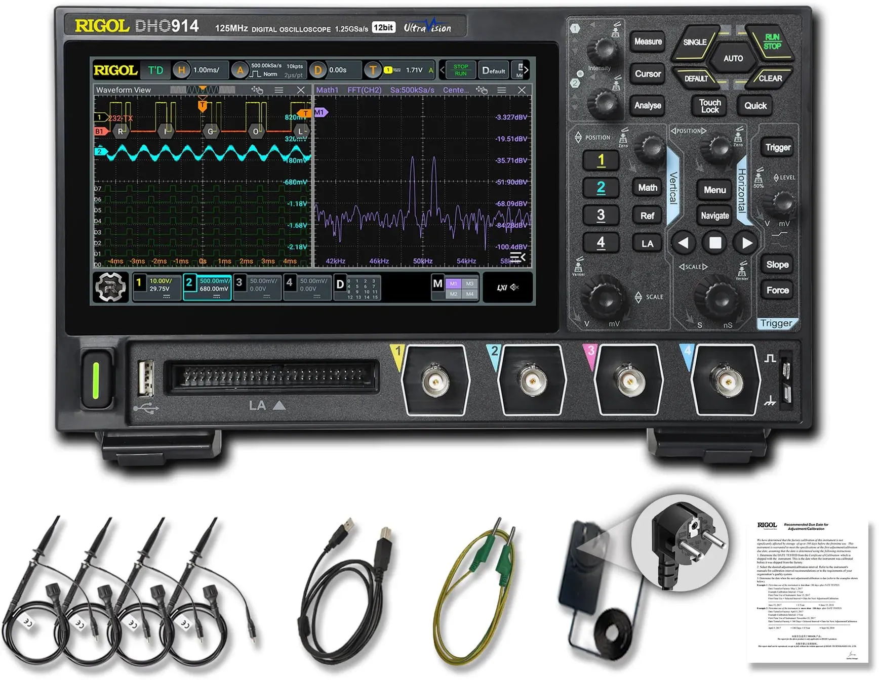 8 Händlerangebote bei billiger.de - Kategorie: Spannungsprüfer - RIGOL - Das Modell DS1102Z-E ist ein 100MHz, 2 Kanal Digital Oszilloskop, mit 1GS/sec Sample Rate, mit herausragenden Eigenschaften, wie einer sehr grossen Speichertiefe von 14 MioPkt. Sowie integrierter Seriell Bus Trigerung und SPI, I2C, RS232 Decoding, 7 Zoll grossen FarbDisplay , zur optimalen Anzeige von Messsignalen. LAN, USB und AUX Schnittstellen sind Standard, ebenso viele Math Funktionen. - GTIN:6973332403624 Das Rigol DS1054Z ist ein sehr beliebtes und leistungsstarkes 4-Kanal-Oszilloskop, das oft als Referenzgerät für Hobbyisten und Studenten empfohlen wird. ![]() ![]()
