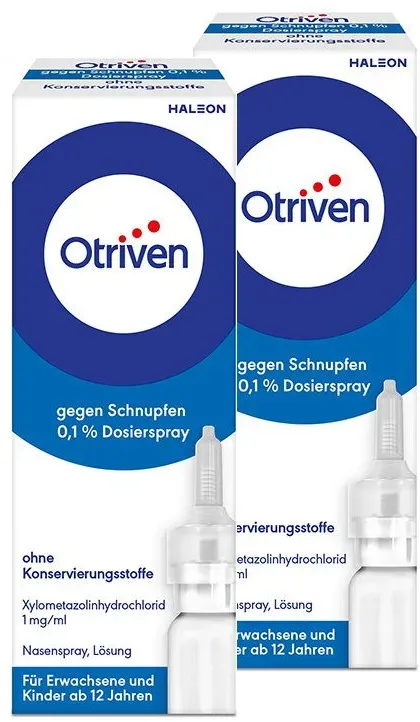 Verfügbarkeit: Auf Lager - Kategorie: Nahrungsergänzungsmittel - Bodfeld Apotheke - GTIN:4262465282094 - OTRIVEN 0,05% Dosierspray o.Konservierungsstoffe 2x10 ml MEDIKAMENTE Marke: Bodfeld Apotheke - 11,59 Euro bei Amazon Marketplace Health & Personal Care - gefunden von billiger.de Dieses Angebot ist mit 14.00 Euro eine Option für Otriven 0,1% Dosierspray mit einer Handcreme. ![]() ![]() OTRIVEN 0,1% Dosierspray o.K. für Erwachsene und Kinder ab 12 Jahren 1x10ml inclusive einer Handcreme von vitenda