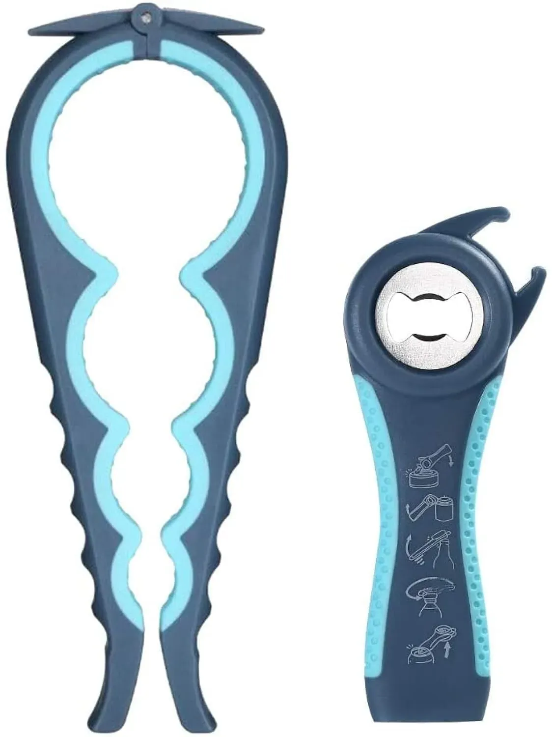 Auf Lager Versand durch AmazonOtstar Neuester Glasöffner, 5-in-1-Multifunktions-Flaschenöffner-Set, für schwache Hände, ältere Menschen, Arthritis-Patienten (blau)