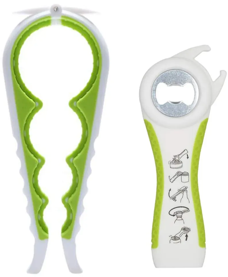 Auf Lager Versand durch AmazonOtstar Neuester Glasöffner, 5-in-1-Multifunktions-Flaschenöffner, Ringzug-Dosenöffner-Set für schwache Hände, ältere Menschen, Arthritis-Patienten (weiß und grün)