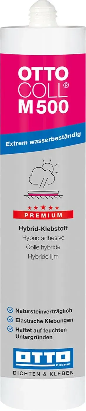 OTTOCOLL M 500 eignet sich für eine Vielzahl von Materialien wie Holz, Glas, Metall (Alu, Edelstahl, Kupfer, Messing), Kunststoffe (auch Hart- und Weich-PVC), Ziegel, Fliesen, Naturstein und Keramik. Besonders hervorgehoben wird die Eignung für lackiertes und emailliertes Glas sowie für Naturstein. Der Klebstoff ist extrem wasserbeständig und kann auch bei Wasserbelastung eingesetzt werden. Er ist für den Innen- und Außenbereich geeignet. Sehr gute Haftung auf vielen Untergründen, oft ohne Primer. Auch auf feuchten Untergründen möglich. Ideal für elastische und spannungsausgleichende Klebungen, z.B. bei dynamischen Belastungen oder Schwingungen. Geruchsarm, frei von Isocyanaten und siliconfrei. Anstrichverträglich nach DIN 52452. Typischerweise von -40 °C bis +90 °C. ? Beliebte Produktmerkmale und Marken