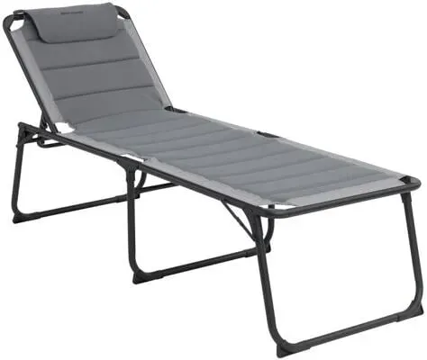 Outwell - EAN: 5709388147851 - Der Samoa besitzt eine schnell trocknende Polsterung sowie ein Textiline-Netzmaterial in einem ansprechenden Schwarzton. Der Stuhl ist unter dem Bezug mit einem wasserabweisenden Material... - bei campingwagner.de - aus Yadore Produktdaten ![]() ![]() Outwell Samoa Campingliege, 70x200/214x49cm, grau