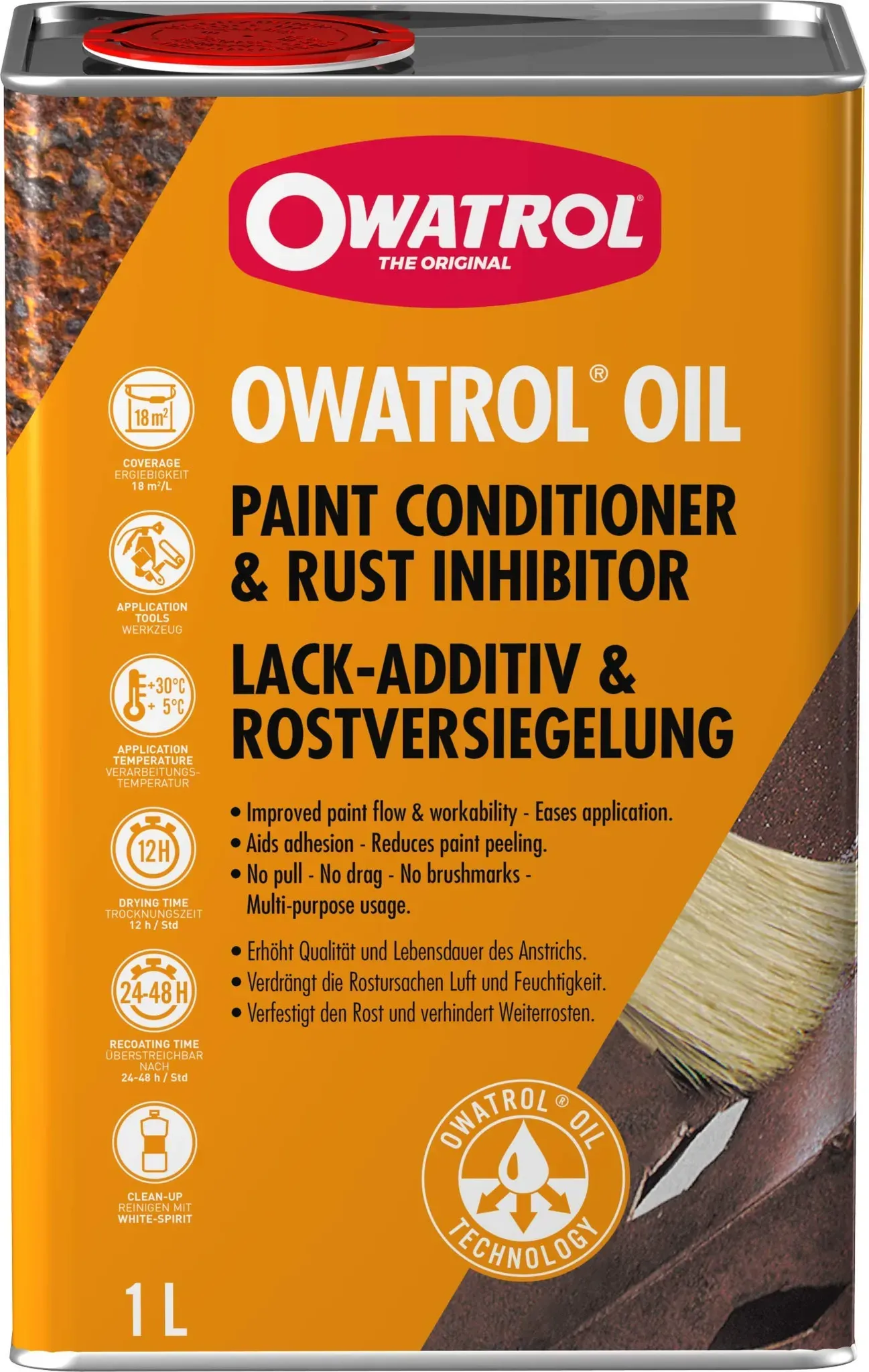 Zustand: Neu - 33,20 € / l - Grundierungen - OWATROL Owatrol - - EAN: 0634480564051 - Mischung aus hochwertiger Rostschutzgrundierung und OWATROL-OIL Außerordentlich gute Eindringeigenschaften Versiegelt festsitzenden Rost, der nicht durch Schleifen oder Strahlen entfernt werden kann oder soll Verdrängt die Rostverursacher Luft und Feuchtigkeit aus dem Rost Farbton: rotbraun - Verkäufer: Mehl-Wohnideen im amazon.de Marketplace Die 1-Liter-Flasche ist eine beliebte Standardgröße für den regelmäßigen Gebrauch und bietet ein gutes Preis-Leistungs-Verhältnis. ![]() ![]() OWATROL Rostschutz öl [1Liter]- Für Metalle, Kunststoff, Glas, Holz, Farben & Lacke- Rostumwandler mit Grundierung Auto- Rostschutzgrundierung- Rostumwandler Kfz- Rust Converter- Grundierung Metall