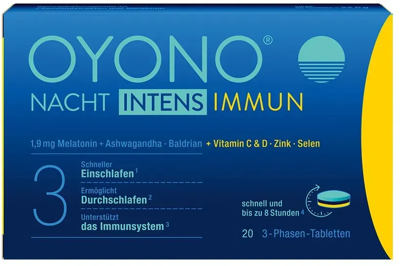 Oyono intens nacht tabletten META PreisvergleichMit dem Meta-Preisvergleich suchen Sie gleichzeitig bei den großen Preisvergleich Portalen!Jetzt live Suche nach oyono intens nacht tabletten starten! Oyono intens nacht tabletten KaufberatungOYONO Nacht Intens Tabletten - KaufberatungOYONO Nacht Intens Tabletten sind ein pflanzliches Schlafmittel, das speziell zur Unterstützung bei Ein- und Durchschlafproblemen entwickelt wurde. Hier erhalten Sie einen umfassenden Überblick für Ihre Kaufentscheidung. Produktmerkmale und WirkungsweiseDas Besondere an OYONO Nacht Intens ist die 3-Phasen-Technologie[1][3]. Die Inhaltsstoffe werden nicht alle gleichzeitig, sondern zeitlich versetzt während der Nacht freigesetzt - bis zu 8 Stunden lang[4]. Die Tablette kombiniert folgende Wirkstoffe[1][5]: