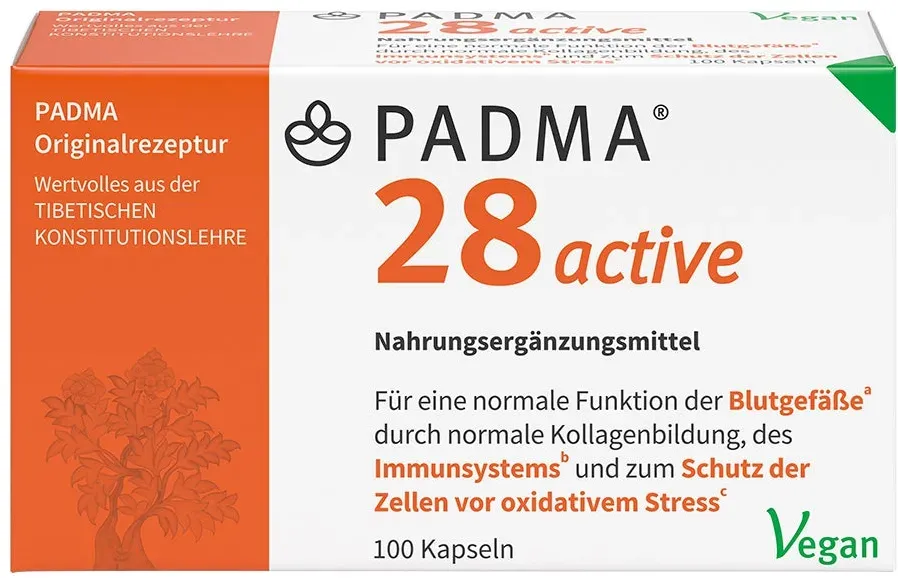 Zusammenfassung: | Merkmal | Padma 28 N (Arzneimittel) | Padma 28 active (Nahrungsergänzung) | |-----------------------|------------------------------------------------|---------------------------------------------------| | Anwendung | Durchblutungsstörungen mit Symptomen | Unterstützung von Blutgefäßen, Immunsystem, Zellschutz | | Wirkstoffe | Tibetische Kräuter (z.B. Himalayaschartenwurzel) | Tibetische Kräuter + Vitamin C | | Zulassung | Zugelassenes Arzneimittel | Nahrungsergänzungsmittel | | Packungsgrößen | 200 bis 540 Kapseln | 200 Kapseln | | Preisbereich | Ca. 60-75 CHF (200 Kapseln) | Ca. 50-70 CHF (200 Kapseln) | | Beliebtheit | Etabliert, bewährt seit Jahrzehnten | Ebenfalls beliebt, besonders für Vitalität und Zellschutz | Für die Suche im Meta-Preisvergleich können Sie gezielt nach Padma 28 N oder Padma 28 active suchen, um aktuelle Preise und Angebote zu vergleichen. Jetzt live Suche nach padma 28 starten! Empfohlene Padma 28 Angebote*Durch Käufe über Links zu Händlern kann diese Website eine Provision erhalten, u.a. durch das eBay Partner Network und das AmazonPartnerNetDieses Angebot ist mit 28.06 Euro das günstigste für 100 Stück Padma 28 active Kapseln und somit ideal für preisbewusste Käufer. ![]() ![]() PADMA 28 active 100 St