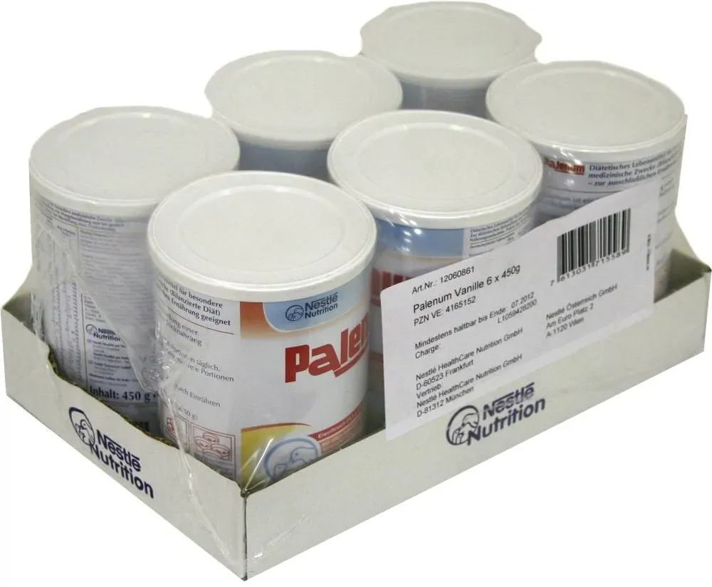 Dieses Angebot ist ein Beispiel für Angebote, die kürzlich auf dem eBay-Marktplatz in der Kategorie 180960 verfügbar waren. Bitte aktualisieren Sie die Suchergebnisse um aktuelle Angebote zu erhalten. Dieses Angebot für 58 Euro für 6x450g Palenum Vanille Pulver ist eine gute Option für den Kauf einer größeren Menge. ![]() ![]() Nestle Trinknahrung Palenum® Pulver, Vanille, 450 g, 6 Dosen**G