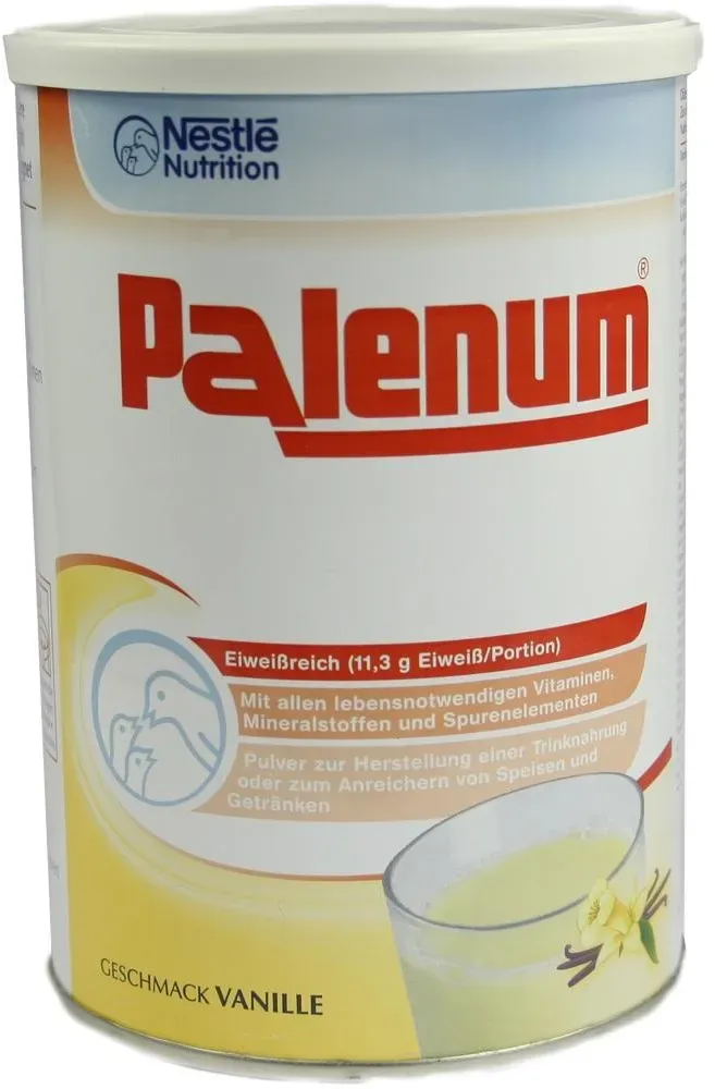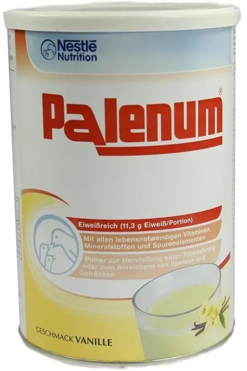 Palenum META PreisvergleichMit dem Meta-Preisvergleich suchen Sie gleichzeitig bei den großen Preisvergleich Portalen!Jetzt live Suche nach palenum starten! Palenum KaufberatungPalenum ist ein diätetisches Lebensmittel in Pulverform zur Herstellung einer Trinknahrung, das vor allem bei eingeschränkter Fähigkeit zur normalen Ernährung eingesetzt wird. Es eignet sich zur ausschließlichen oder ergänzenden Ernährung bei Mangelernährung, erhöhtem Eiweißbedarf oder bestimmten Erkrankungen wie Tumoren oder Wundheilungsstörungen[1][3]. Wichtige Produktmerkmale von Palenum Vanille Pulver sind: