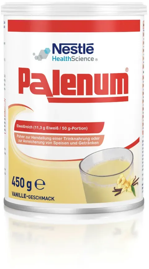40,29 /kg - Kategorie: Arzneimittel - Nestl - GTIN:4150039266086 - PZN:03926608 - Palenum - normokalorisches eiweißreiches Pulver zur Herstellung einer TrinknahrungEigenschaften:normokalorischeiweißreich2 Sorten mit Ballaststoffen (Schokolade, Cappuccino)2 Sorten ohne Ballaststoffe (Vanille, Himbeere)glutenfreidiätetisch vollständigbedingt erstattungsfähigPalenum ist ein Lebensmittel für besondere medizinische Zwecke, es wird eingesetzt zum Diätmanagement beibestehender Mangelernährungbei einem Risiko für eine Mangelernährungbei erhöhtem Eiweißbedarf (z.B. bei Wundheilungsstörungen, Dekubitus, Rekonvaleszenz, in der Geriatrie)Palenum kann zur ausschließlichen Ernährung eingesetzt werden, dabei beachten Sie bitte die Empfehlung des Arztes. Zur ergänzenden Ernährung werden 1 3 Portionen pro Tag (1 Portion entspricht ca. 50 g Pulver in 150 ml Wasser gelöst) verzehrt.Wie alle Lebensmittel für besondere medizinische Zwecke sollte Palenum unter ärztlicher Aufsicht verwendet werden. - 18,13 Euro bei medpex.de - gefunden von billiger.de Dieses Angebot für 22.04 Euro für 450g Palenum Vanille ist von mehreren Händlern auf Amazon erhältlich und bietet Flexibilität. ![]() ![]() Palenum Vanille, 450 g by Nestlé