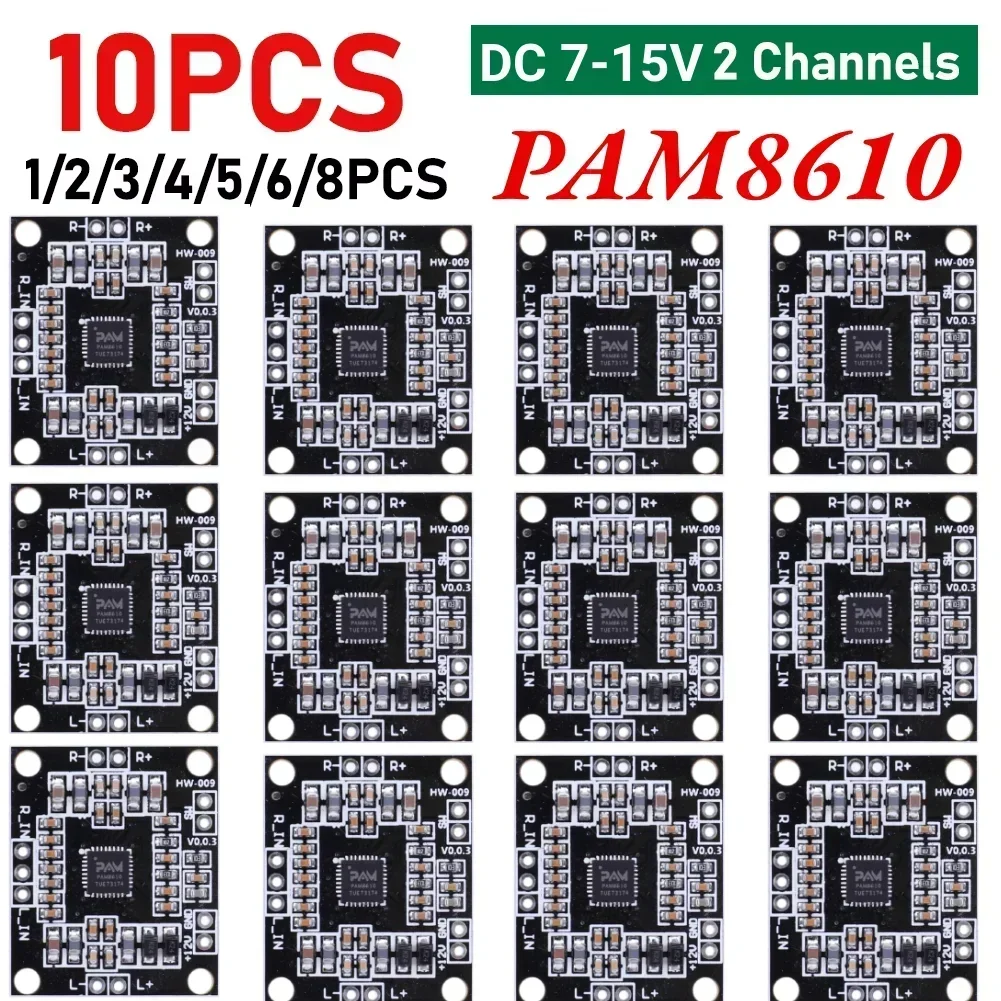 Pam8610 META PreisvergleichMit dem Meta-Preisvergleich suchen Sie gleichzeitig bei den großen Preisvergleich Portalen!Jetzt live Suche nach pam8610 starten! Pam8610 KaufberatungDie PAM8610 ist ein kompakter Stereo-Class-D-Audioverstärker-Chip (2 × 10 W bei 8 ? Last und 13 V, bis 15 W bei 4 ?), der hauptsächlich als Modul für DIY-Projekte, kleine Lautsprechersysteme oder HiFi-Anwendungen genutzt wird. Beachten Sie bei der Auswahl Versorgungsspannung (7-15 V DC, empfohlen 12 V / 2 A), Lautsprecherimpedanz (4-8 ?, ideal 8 ?), Schutzfunktionen (Überstrom, Überhitzung, Kurzschluss) sowie niedrigen THD+N (0,1 %) für klaren Sound.[1][2][3][4] Wichtige Merkmale und BeliebtheitDiese Eigenschaften sind bei PAM8610-Modulen am häufigsten genannt und beliebt für effiziente, platzsparende Anwendungen: