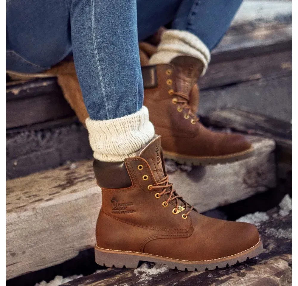 Panama jack - EAN: 8433991470255 - Panama Jack - Herrenschuh Stiefel Stiefelette Warmfutter - Panama 03 Panama 03 Igloo C11 - cuero bark Napa Grass - Waterproof, Lammfell Futter - Herausnehmbares Fußbett auch für lose Einlagen geeignet - Sportlicher Winterboot für Herren in schönem mittelbraun/ cuero bark aus Obermaterial hochwertigem echt Fettleder und Glattleder um den gepolsterten Schaftrand. Dank eines weiteren Verfahren beim Gerbprozess ist dieser Schuh wasserdicht. Das Innenfutter und die herausnehmbare Decksohle bestehen aus atmungsaktivem und temperaturregulierendem echt Lammfell. Die Laufsohle aus Gummi mit 20 mm Absatzhöhe. Die Schafthöhe misst 17 cm. über die Schnürung wird der Stiefel optimal an den Fuß angepasst. o - bei schuhe.de - aus Yadore Produktdaten Dieses Angebot für die Panama 03 Igloo C11 Winterstiefel aus Leder in GröÃ?e 45 EU ist ideal für die kältere Jahreszeit. ![]() ![]() Panama Jack Panama 03 Igloo C11 Winterstiefel Obermaterial: Leder braun 45 EU