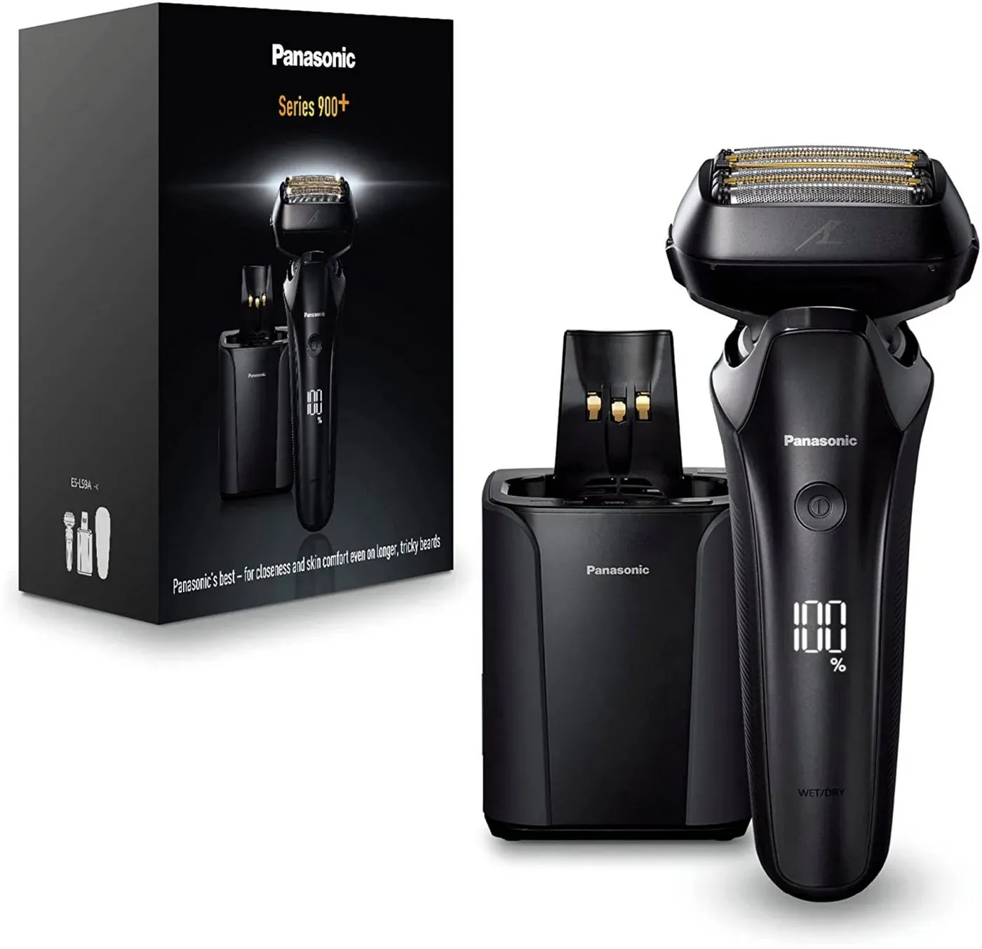 Verfügbarkeit: lieferbar-in 1-2 Werktagen bei dir - Kategorie: Elektrische Rasierer - Panasonic - GTIN:5025232895687 - Ausstattung & Funktionen Funktionen , Trockenrasieren Wet & Dry auch unter der Dusche anwendbar, Reinigungsfunktionen , Clean&Charge-Station, Rasiersystem , 5-fach Scherkopf-Technologie, Eingebaute Trimmer , ausklappbarer Langhaarschneider, Mitgelieferte Aufsätze , Scherkopf, Technische Daten Anzahl Geschwindigkeitsstufen , 1, Anzahl Schnittstufen , 1, Leistung , 65 W, Schnittbreite , 38 mm, Displayanzeige , LED-Display, WEEE-Reg.-Nr. DE , 92081004, Betriebsdauer maximal , 50 min, Stromversorgung Art Stromversorgung , Akku (fest eingebaut), Batterie-/Akku-Technologie , Lithium-Ionen (Li-Ion), Anzahl Akkus , 1 St., Akkukapazität , 680 mAh, Leistung Akku , 2,5 Wh, Spannung Akku , 3,7 V, Anzeige Akkustatus , in Prozent, Lademethode , Ladestation, Dauer Schnellladung , 60 min, Dauer Erstaufladung , 1 h, Dauer Vollladung , 1 h, Spannung , 230 V, Spannungsanpassung , automatisch, Farbe & Material Farbe , schwarz, Material , Kunststoff, Pflegehinweis Reinigungsmöglichkeiten , unter fließendem Wasser abwaschbar, Maßangaben Breite , 7 cm, Tiefe , 5 cm, Höhe , 16 cm, Gewicht , 214 g, Hinweise Lieferumfang , Aufbewahrungstasche Bedienungsanleitung Haarentfernungspinsel Ladestation Reinigungskartusche, Artikelbezeichnung Besondere Merkmale , Linearmotor, inkl. Reinigungs-& Ladestation, - 226,01 Euro bei OTTO - gefunden von billiger.de Der Panasonic Series 900 Premium Rasierer ES-LV9U bietet eine Reinigungsstation und einen Langhaartrimmer für maximalen Komfort und Gründlichkeit. ![]() ![]() Panasonic Elektrorasierer Series 900 Premium Rasierer ES-LV9U, Reinigungsstation, Langhaartrimmer schwarz