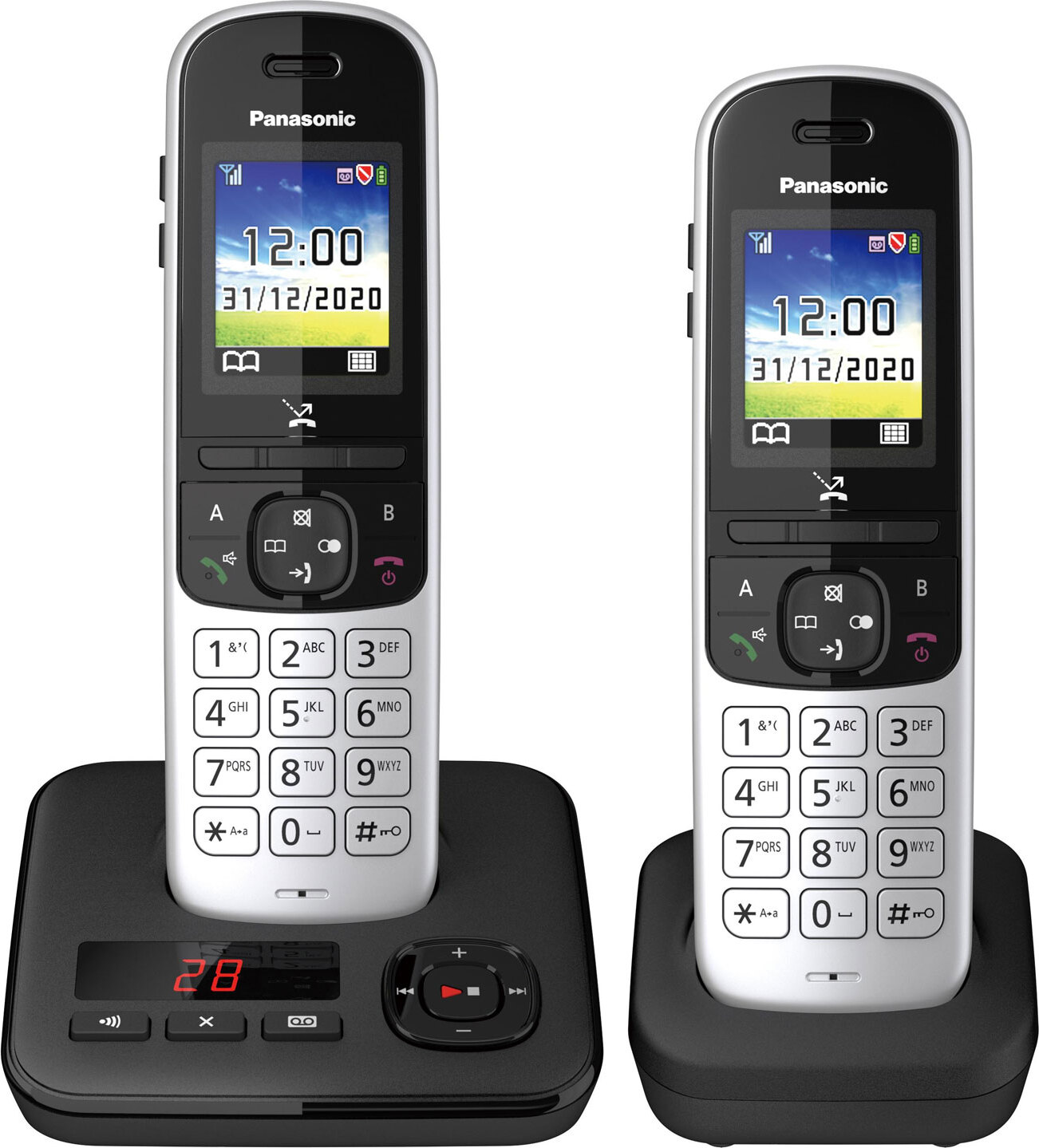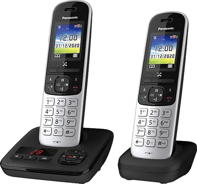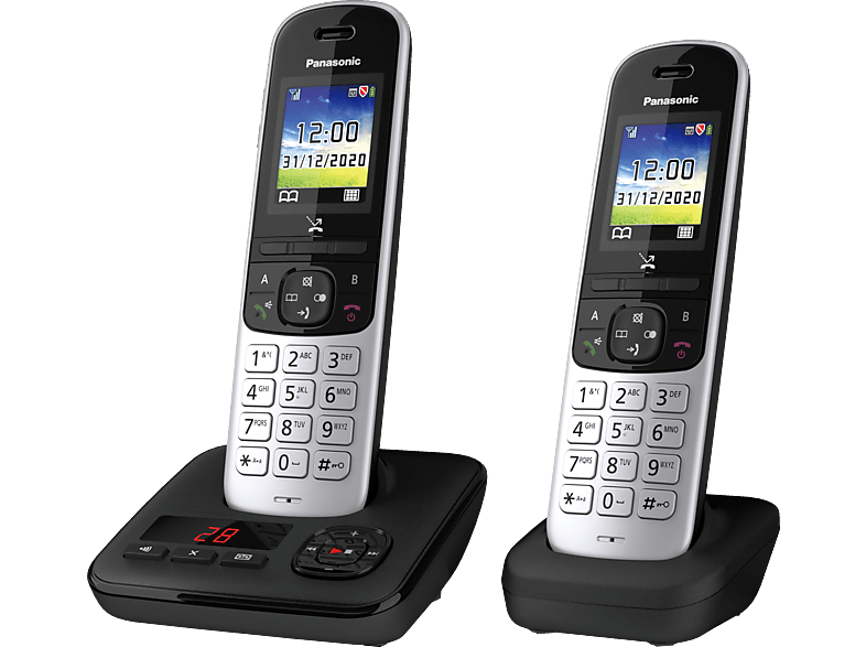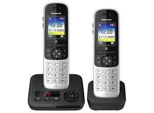 ![]() ![]() Panasonic KX-TGH722GS Schnurlostelefon Duo mit Anrufbeantworter (DECT Telefon, strahlungsarm, Farbdisplay, Anrufsperre, Freisprechen) schwarz