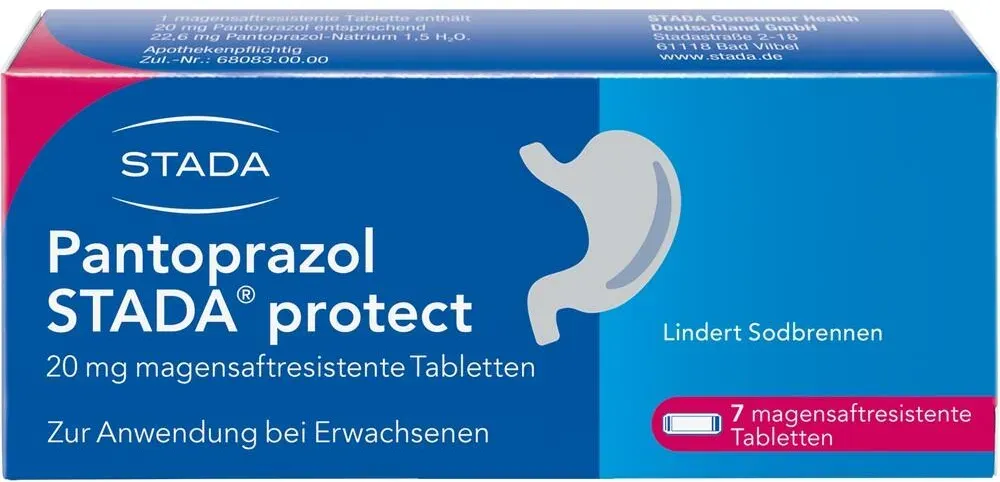 0,23 /Stück - Kategorie: Arzneimittel - STADA - GTIN:4150064156017 - PZN:06415601 - Wichtige Hinweise (Pflichtangaben): Pantoprazol Stada protect 20 mg magensaftresistente Tabletten. Anwendungsgebiete: zur kurzzeitigen Behandlung von Reflux-Symptomen (z.B. Sodbrennen, saures Aufstoßen) bei Erwachsenen. Zu Risiken und Nebenwirkungen lesen Sie die Packungsbeilage und fragen Sie Ihre ärztin, Ihren Arzt oder in Ihrer Apotheke! GEBRAUCHSINFORMATION: INFORMATION FüR DEN ANWENDER Pantoprazol Stada protect 20 mg magensaftresistente Tabletten zur Anwendung bei Erwachsenen Wirkstoff: Pantoprazol Lesen Sie die gesamte Packungsbeilage sorgfältig durch, bevor Sie mit der Einnahme dieses Arzneimittels beginnen, denn sie enthält wichtige Informationen. Nehmen Sie dieses Arzneimittel immer genau wie in dieser Packungsbeilage beschrieben bzw. genau nach Anweisung Ihres Arztes oder Apothekers ein. Heben Sie die Packungsbeilage auf. Vielleicht möchten Sie diese später nochmals lesen. Fragen Sie Ihren Apotheker, wenn Sie weitere Informationen oder einen Rat benötigen. Wenn Sie Nebenwirkungen bemerken, wenden Sie sich an Ihren Arzt oder Apotheker. Dies gilt auch für Nebenwirkungen, die nicht in dieser Packungsbeilage angegeben sind. Siehe Abschnitt 4. Wenn Sie sich nach 2 Wochen nicht besser oder gar schlechter fühlen, wenden Sie sich an Ihren Arzt. Was in dieser Packungsbeilage steht: WAS IST PANTOPRAZOL STADA PROTECT UND WOFüR WIRD ES ANGEWENDET? WAS SOLLTEN SIE VOR DER EINNAHME VON ... Zentiva Pharma GmbH Pantoprazol-ADGC 20mg bietet mit 1.95 Euro eine günstige Packung mit 7 Tabletten. ![]() ![]() Zentiva Pharma GmbH Pantoprazol-ADGC 20mg 7 St Tabletten magensaftresistent