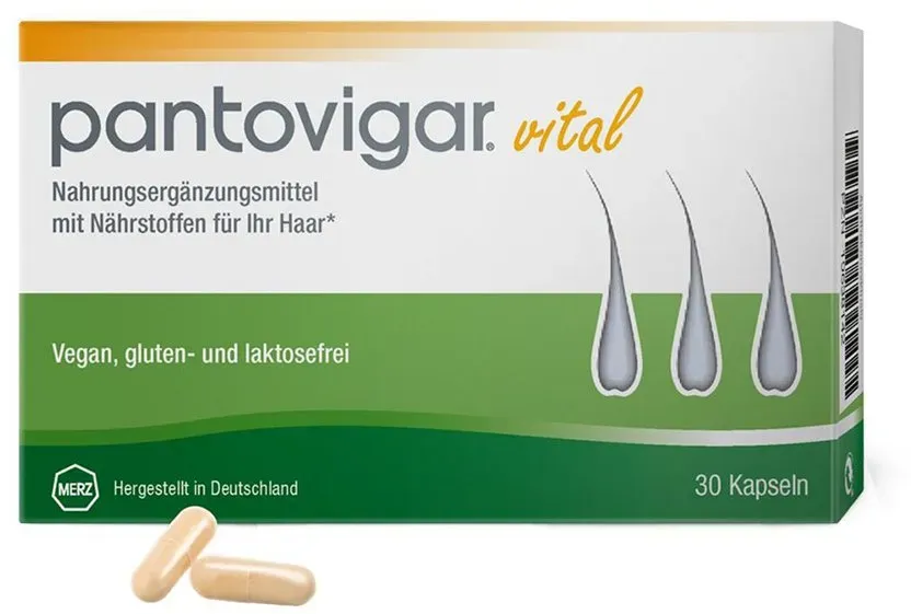11 Händlerangebote bei billiger.de - Kategorie: Nahrungsergänzungsmittel - Merz Pharma - Pantovigar vital Kapseln mit Nährstoffen für Haare Nahrungsergänzungsmittel mit B-Vitaminen, Zink und Eisen Mit Hefe, Reisprotein, L-Cystin und Erbsensprossenextrakt Vitamin B7/Biotin und Zink tragen zur Erhaltung normaler Haare bei Laktose- und glutenfrei Vegan - GTIN:4046222100810 - PZN:19638142 Diese Kapseln bieten eine gute Balance zwischen Preis und Menge für eine erste Anwendung. ![]() ![]() Merz Pharma PANTOVIGAR vital Kapseln mit Nährstoffen für Haare 30 St