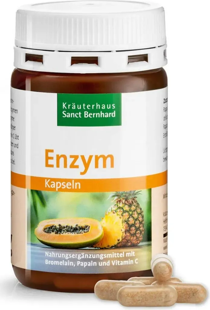 4 Händlerangebote bei billiger.de - Kategorie: Nahrungsergänzungsmittel - Kräuterhaus Sanct Bernhard - Produktinformationen Bezeichnung des Nahrungsergänzungsmittels , Sanct Bernhard Enzym-Kapseln - 90 Kapseln, Produktdetails Darreichungsform , Kapseln, Zutaten , Zutaten: Maisstärke, Ananasfruchtpulver, Papayafruchtpulver, Hydroxypropylmethylcellulose, Vitamin C, Bromelain, Maltodextrin, Papain, Magnesiumstearat (Trennmittel) Nährwertinformation: Portion: 3 Kapseln, Portionen pro Dose: 30 Nährstoffanalyse siehe Foto , Zusatzstoffe , keine, Allergene , keine, Hinweise Lebensmittelunternehmer , Kräuterhaus Sanct Bernhard, - GTIN:4250382204343 Diese Kapseln von Pharma Peter sind eine preiswerte Option für die orale Einnahme von Papaya-Enzymen. Juvalis.de Pharma Peter Papaya Enzym Kapseln