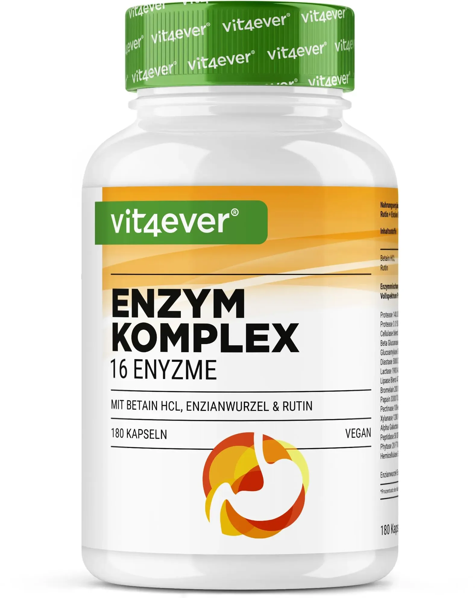 Kategorie: Nahrungsergänzungsmittel - Vegavero - GTIN:4260557421581 - HOCHDOSIERT: Mit 700 mg reinem Papain pro Kapsel (2100 mg pro Tagesdosis) bietet unser Produkt die höchste Dosis auf dem Markt. Das enthaltene Papaya Enzym weist eine Enzymaktivität von 100.000 U/g auf. Unser hochwertiges Papain ist 100% natürlich und wird aus Papaya gewonnen. *in Kategorie Papain bei vergleich.org BESSER ALS DIE FRUCHT: Während das reife Fruchtfleisch der Papaya (Carica papaya) und damit auch Papaya Extrakt kaum Papain enthält, weisen besonders die Kerne sowie die Schale der unreifen Frucht eine hohe Konzentration an dem natürlichen Verdauungsenzym auf. Die Rohware für unser Produkt gewinnen wir daher aus genau diesen Pflanzenteilen. NATüRLICHER ALLROUNDER: Neben seiner Funktion als proteinspaltendes Enzym ist Papain ähnlich wie Bromelain für viele weitere positive Effekte auf den menschlichen Körper bekannt. Wir empfehlen eine eigene Recherche, um sich mit den vielseitigen Einsatzmöglichkeiten von Papain vertraut zu machen. *Preis-Leistungs-Sieger in der Kategorie 'Papain' bei Vergleich.org 2024. LABORGEPRüFT: Unsere Papaya Enzym Kapseln werden ausschließlich in Deutschland nach den höchsten HACCP-Qualitätsstandards produziert. Um eine optimale Qualität zu gewährleisten, testen wir unsere Kapseln nicht nur auf mikrobielle Verunreinigungen wie andere Anbieter, sondern auch auf Schwermetallrückstände. Selbstverständlich ist unser Produkt gentechnikfrei, frei von jeglichen Zusatzstoffen ... Vit4ever bietet einen hochdosierten Verdauungsenzym-Komplex mit 16 Enzymen, inklusive Papain, für umfassende Unterstützung. ![]() ![]() Vit4ever Verdauungsenzyme - 180 Kapseln mit 16 Enzyme plus Betain HCL, Rutin & Enzianwurzel - Mit Bromelain, Papain, Amylase, Lipase, Protease, Laktase - Vegan - Hochdosiert