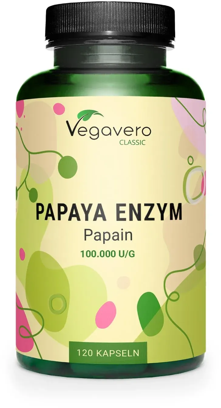 Kategorie: Nahrungsergänzungsmittel - QIDOSHA - GTIN:4270001834621 - LABORGEPRüFT - Unsere Enzym-Kombination Papain & Bromelain wird sorgfältig in Deutschland hergestellt und jede Charge gründlich durch ein externes, zertifiziertes Labor geprüft, u.a. auf: mikrobielle Belastung, Pestizide sowie Schwermetalle. HOHE ENZYM-AKTIVITäT - bei Enzymen ist aber tatsächlich nicht die Dosierung, sondern die enzymatische Aktivität entscheidend. Die liegt bei unserem Präparat recht hoch bei 6194 USP (United States Pharmacopeia) bzgl Papain und bei 685 GDU/g bei Bromelain. Jeder Rohmaterialhersteller nutzt leider andere Testverfahren und Maßeinheiten zur Bestimmung der enzymatischen Aktivität. Als Faustregel gilt, dass 685 GDU = ca 1370 FIP HOCHWERTIGE INHALTSTOFFE - Die Bromelain Papain Kapseln enthalten nur hochwertige und geprüfte Rohstoffe. Unser Papain Bromelain ist frei von Zusatz- und Füllstoffen. Ohne Magnesiumstearat. HOHE DOSIERUNG - Unsere Kapseln beinhalten eine hochdosierte Kombination der hochwertigen Bromelain Papain Enzyme. Enthalten sind jeweils 80mg pro Kapsel, gewonnen aus Ananas und Papaya. 100% VEGAN - Unsere Ananas-Enzyme und Papaya-Enzyme enthalten ausschließlich pflanzliche Inhaltsstoffe, ohne tierische Bestandteile oder Gentechnik. Daher sind die Papain Kapseln und Bromelain Kapseln optimal auch für die vegane Ernährung geeignet. - 17,95 Euro bei Amazon Marketplace Health & Personal Care - gefunden von billiger.de Vegavero bietet hochdosiertes, reines Papain aus der Frucht in veganen Kapseln. ![]() ![]() Papaya Enzym Vegavero | Hochdosiert: 2.100 mg reines Papain pro Tagesdosis | Hohe Enzymaktivität: 100.000 units/g | Natürlich aus der Frucht| 120 Kapseln | Vegan & Ohne Zusätze